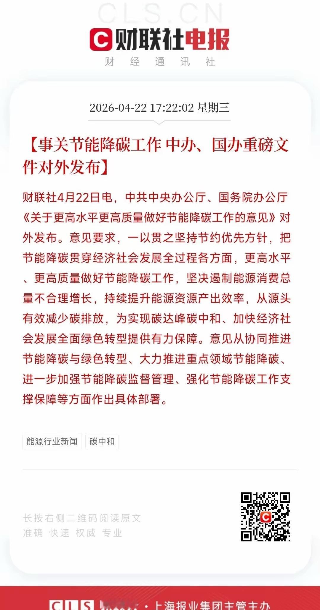 村里又发了重磅文件,主要就是关于新能源的,以后全力发展非化石能源,也就是风光水核这些,同时大力上储能,解决新能源发电不稳的问题。不再大规模新建、扩建煤电厂,煤电的装机数量和发电量都要控制住。煤电的减少就是新能源风电,光伏的增多,因为总用电量是一直在增加的,尤其是现在的工业发达的我国,这就会更加的看重新能源的发电量。政策上面就是大力发展新能源,也许新能源的又一次变革要来了,这次不再是国家的补贴催生,而是市场的需求来促进新能源的发展。这几年A股新能源板块一直处于调整当中,有了这个政策利好短期内应该会迎来反弹的预期,至少会回一波血。