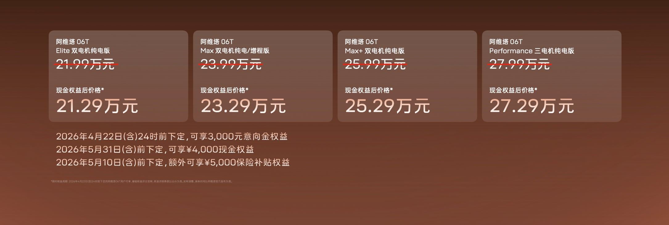 阿维塔06T上市21.99万起阿维塔06T正式上市,售价区间21.99万元-2
