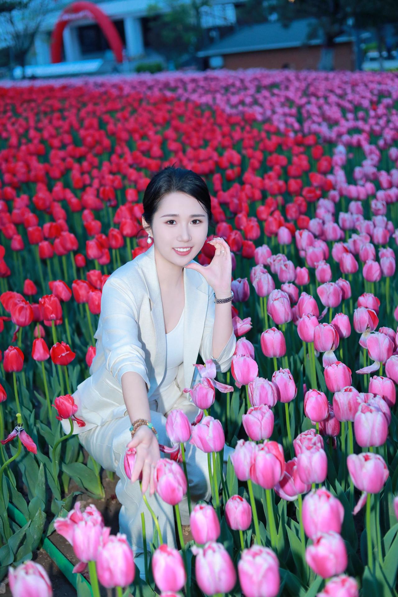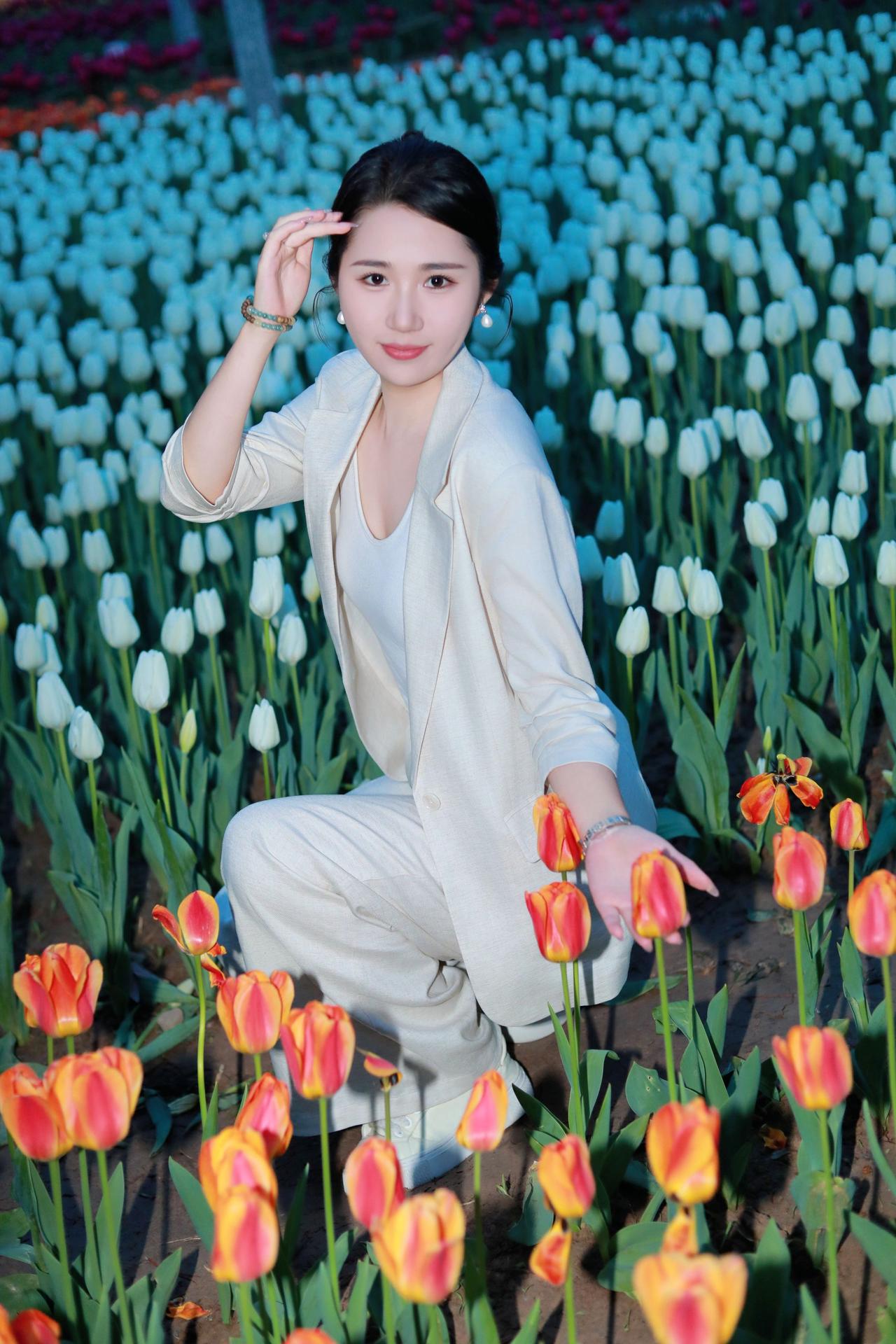 太原人像摄影约拍跟拍晋阳湖郁金香人像原创摄影郁金香花海 花海拍照 花海里的白月光穿搭