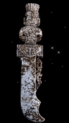 所以,专家们只能保守地说:“短剑的形状和纹饰,在中国夏、商、周三代的玉器上都有发现。”