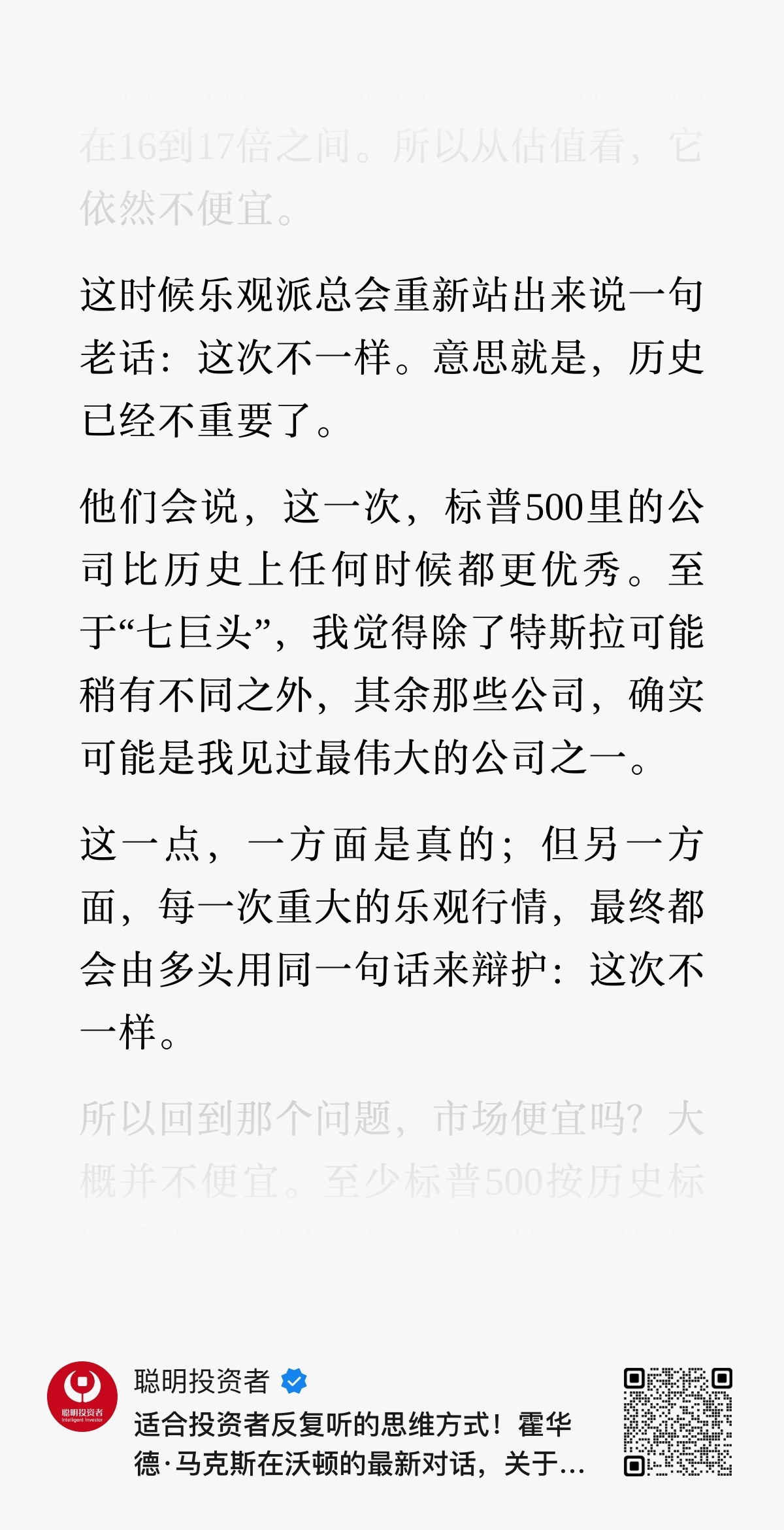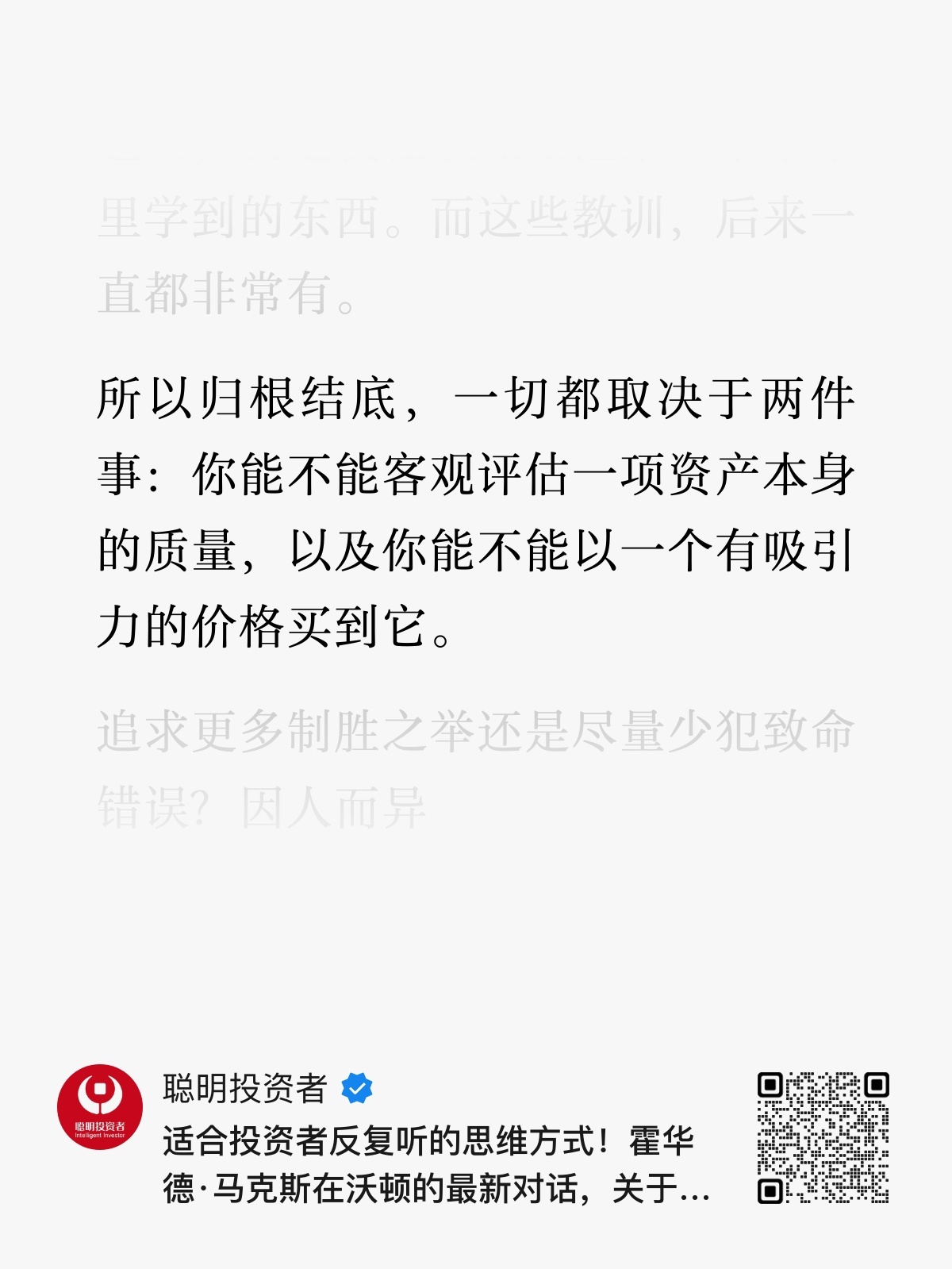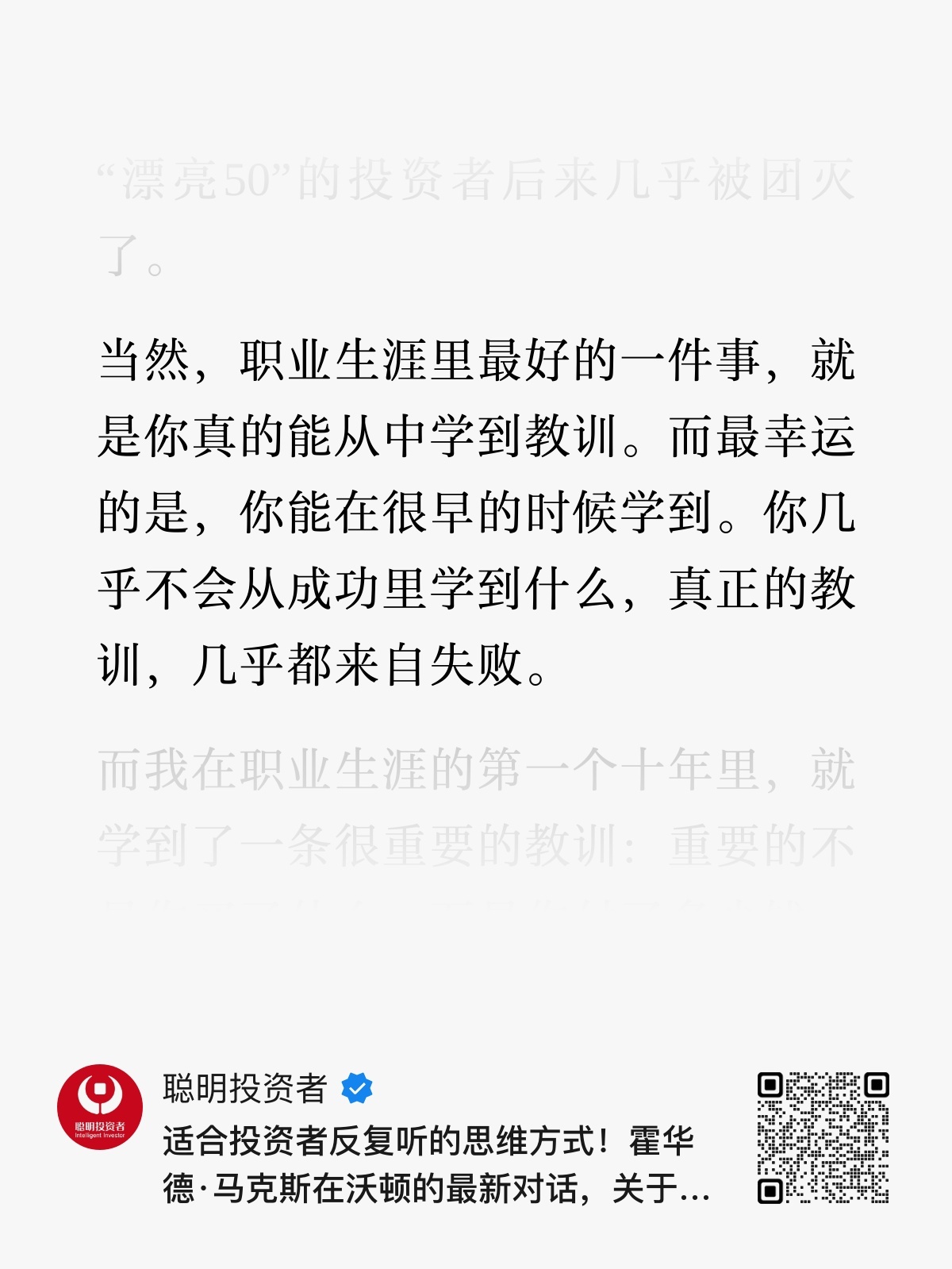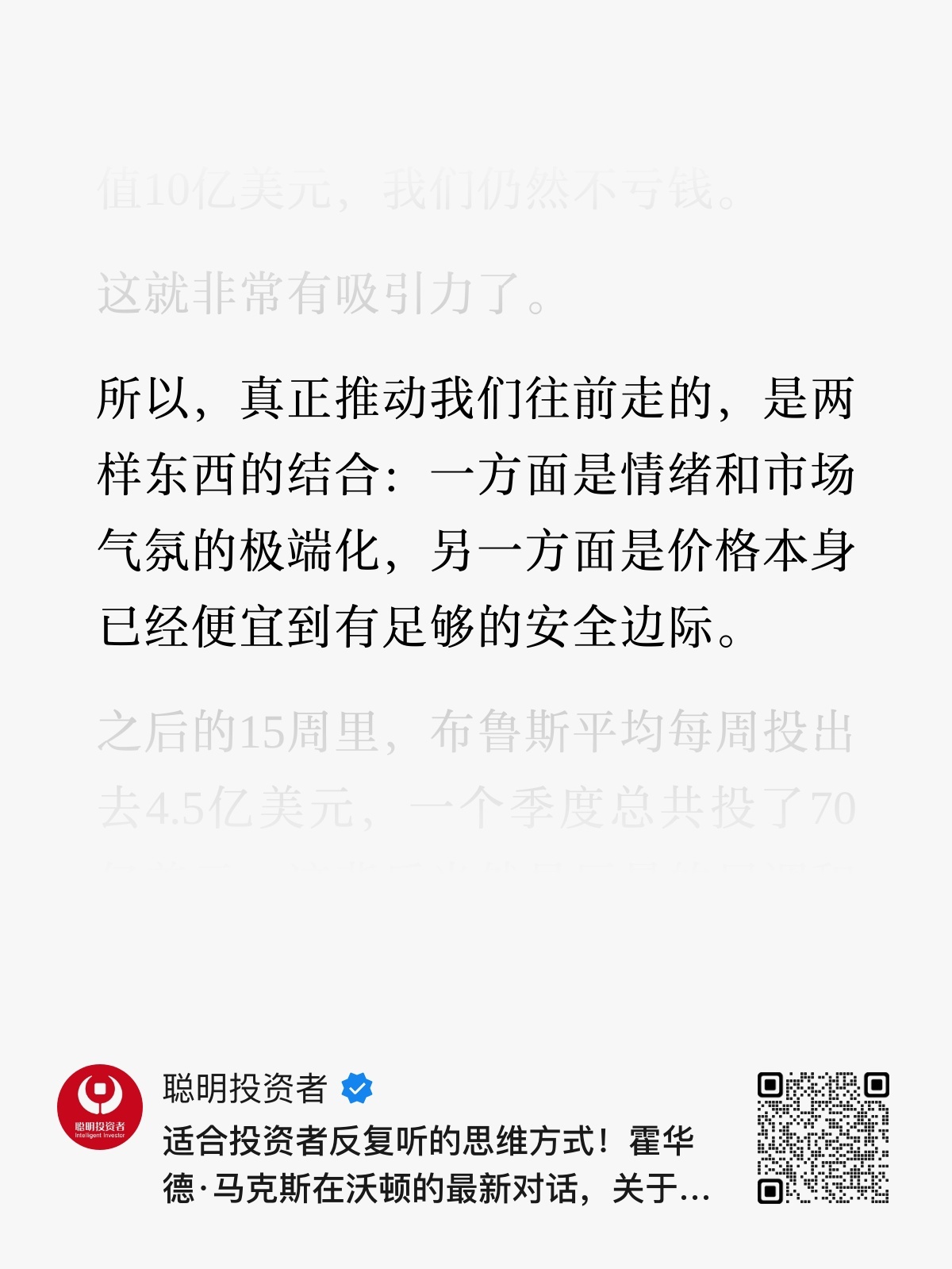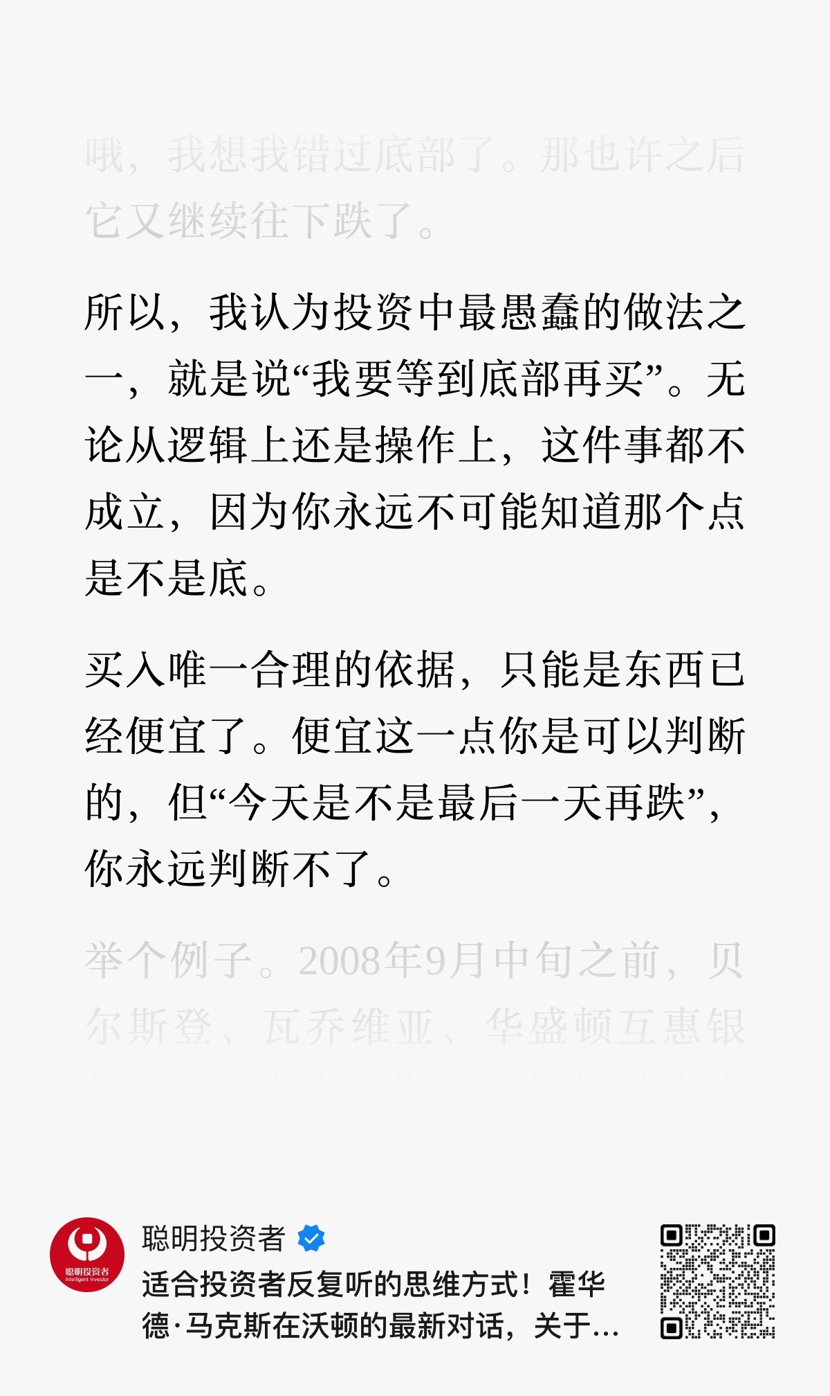 霍华德马克斯:所以,我认为投资中最愚蠢的做法之一,就是说“我要等到底部再买”。无论从逻辑上还是操作上,这件事都不成立,因为你永远不可能知道那个点是不是底。