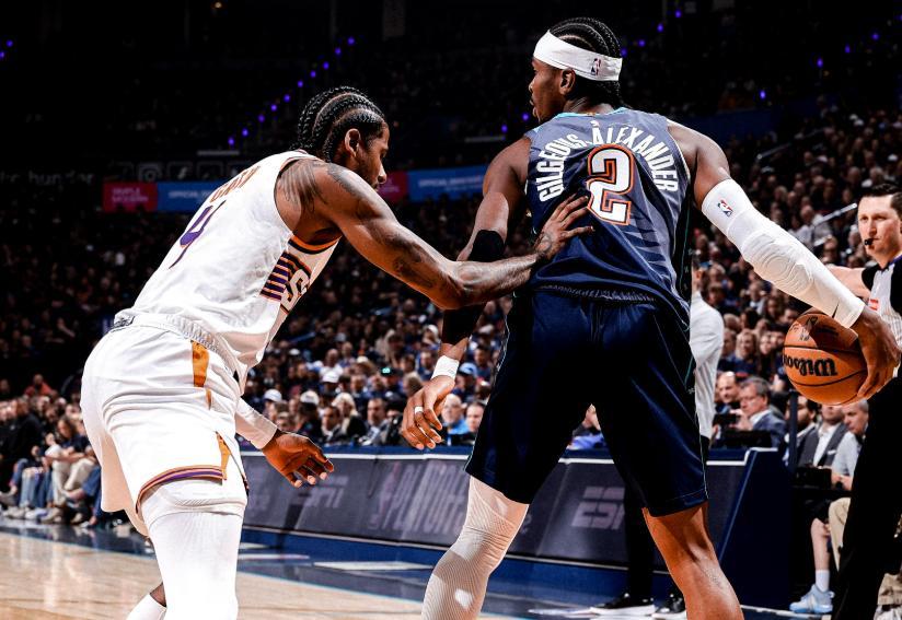 连输2场的太阳,若想翻盘雷霆,只有这两个办法! 1、坚决包夹亚历山大,首轮G1,