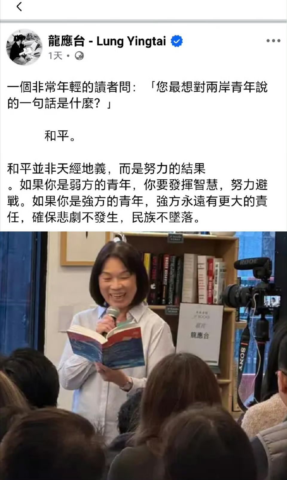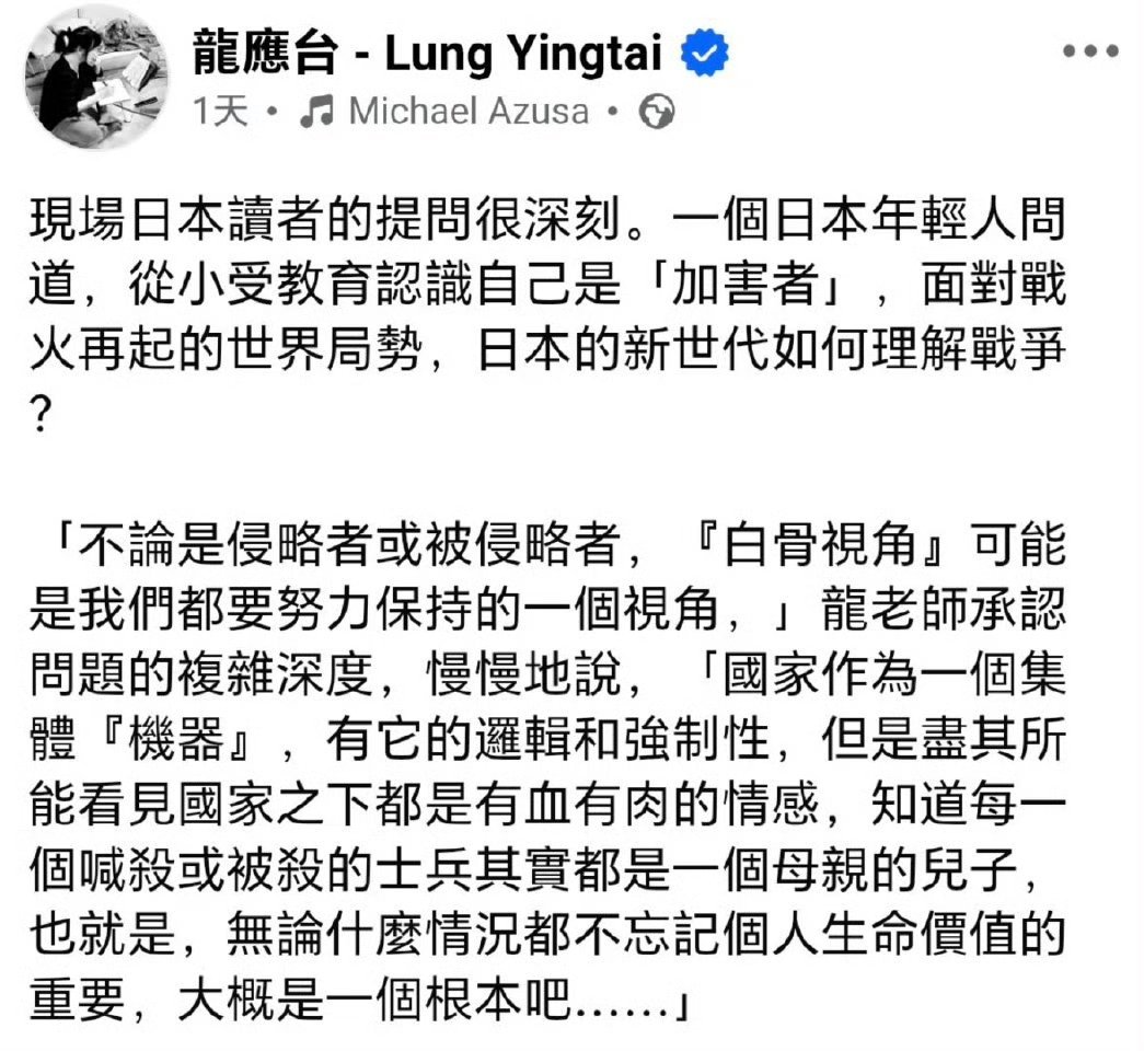龙应台这几天的言论,还是拿台湾人个体的命运来绑架大陆……热点观点海外新鲜事