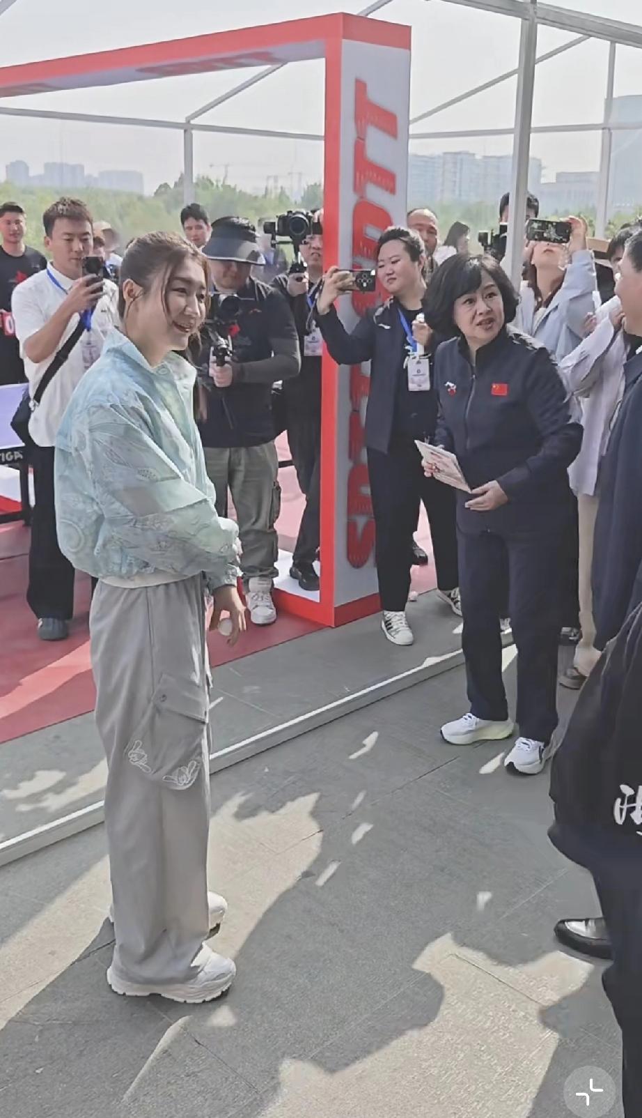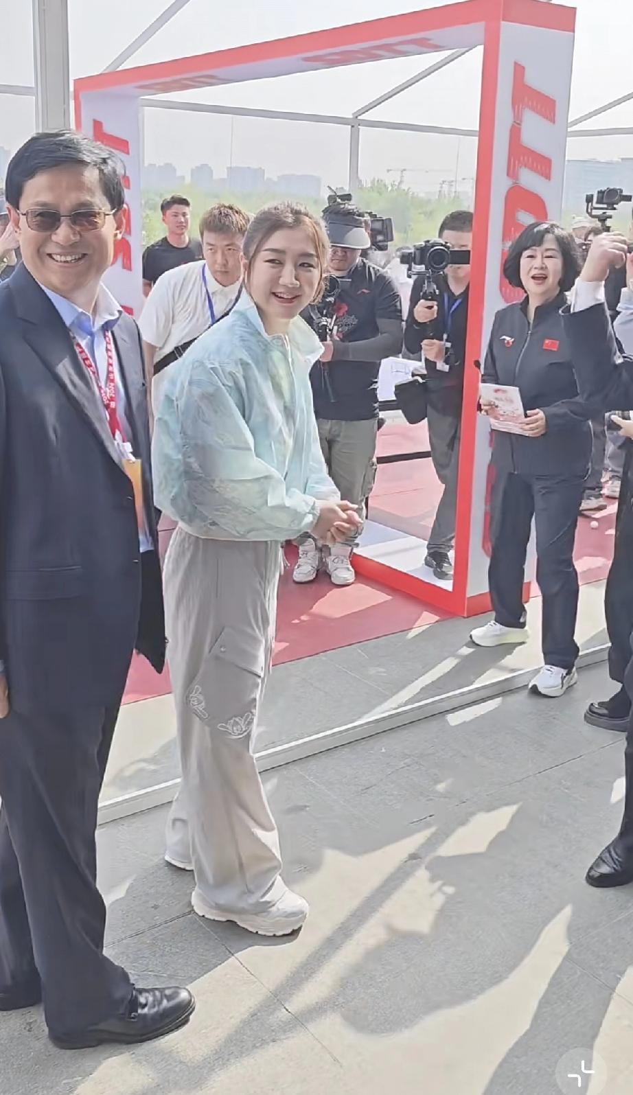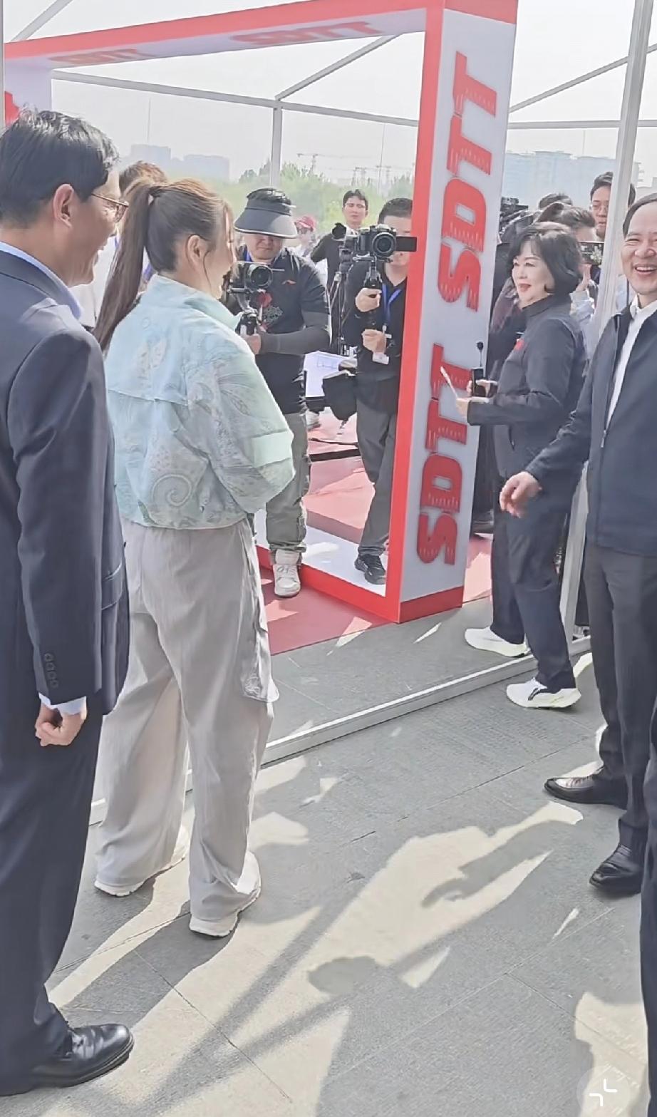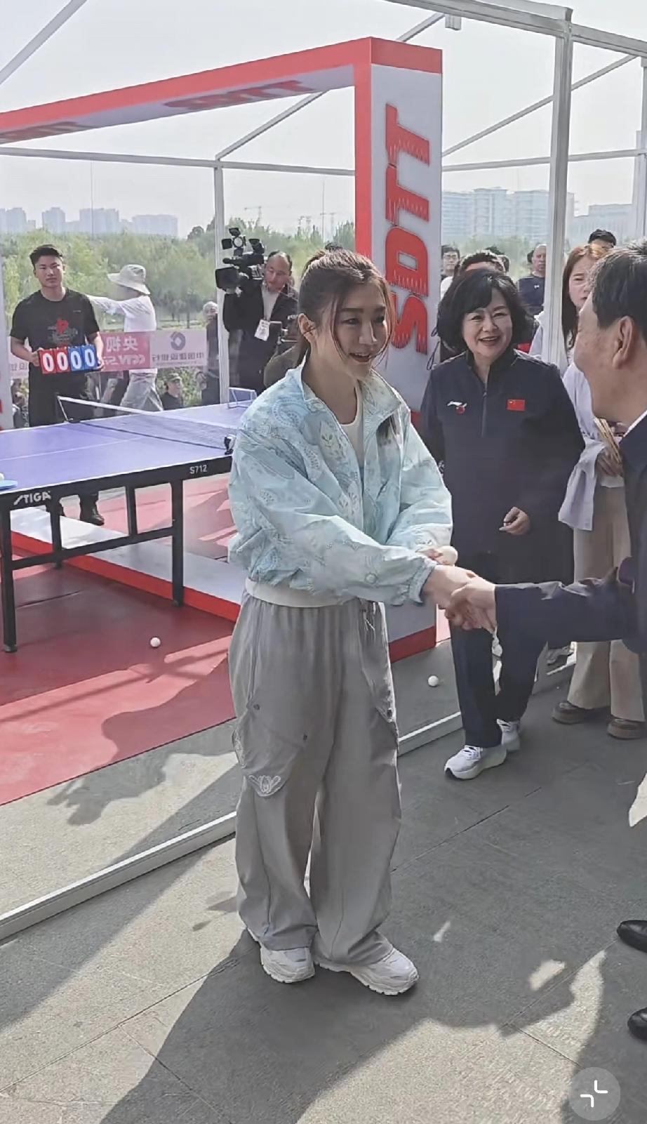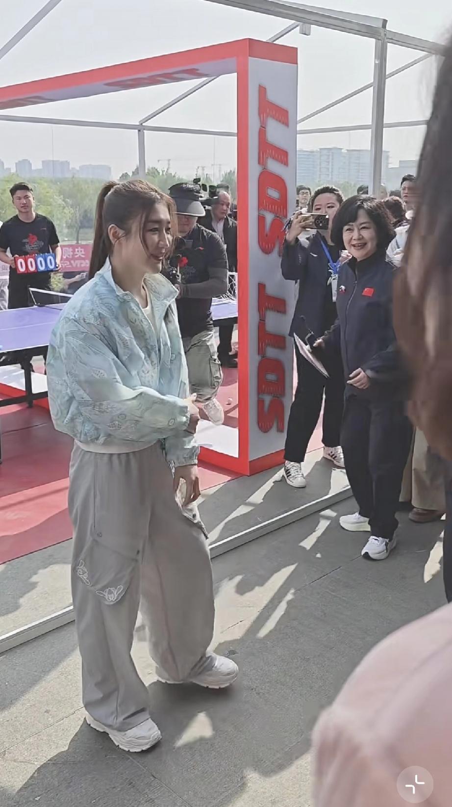 陈梦则不一样,她虽然也是休闲打扮,但精气神特别好,毕竟是运动员出身,经常训练,运动让人充满正能量。