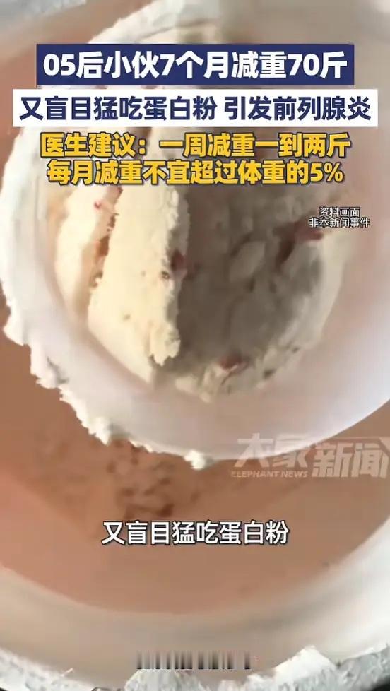 医生说他这是拿健康换体重,出汗多掉的都是水分,喝两口水就补回来了,根本不是脂肪。过量蛋白粉身体吸收不了,反而成了负担。减肥速度太快,身体根本适应不了,各种毛病都会冒出来。
