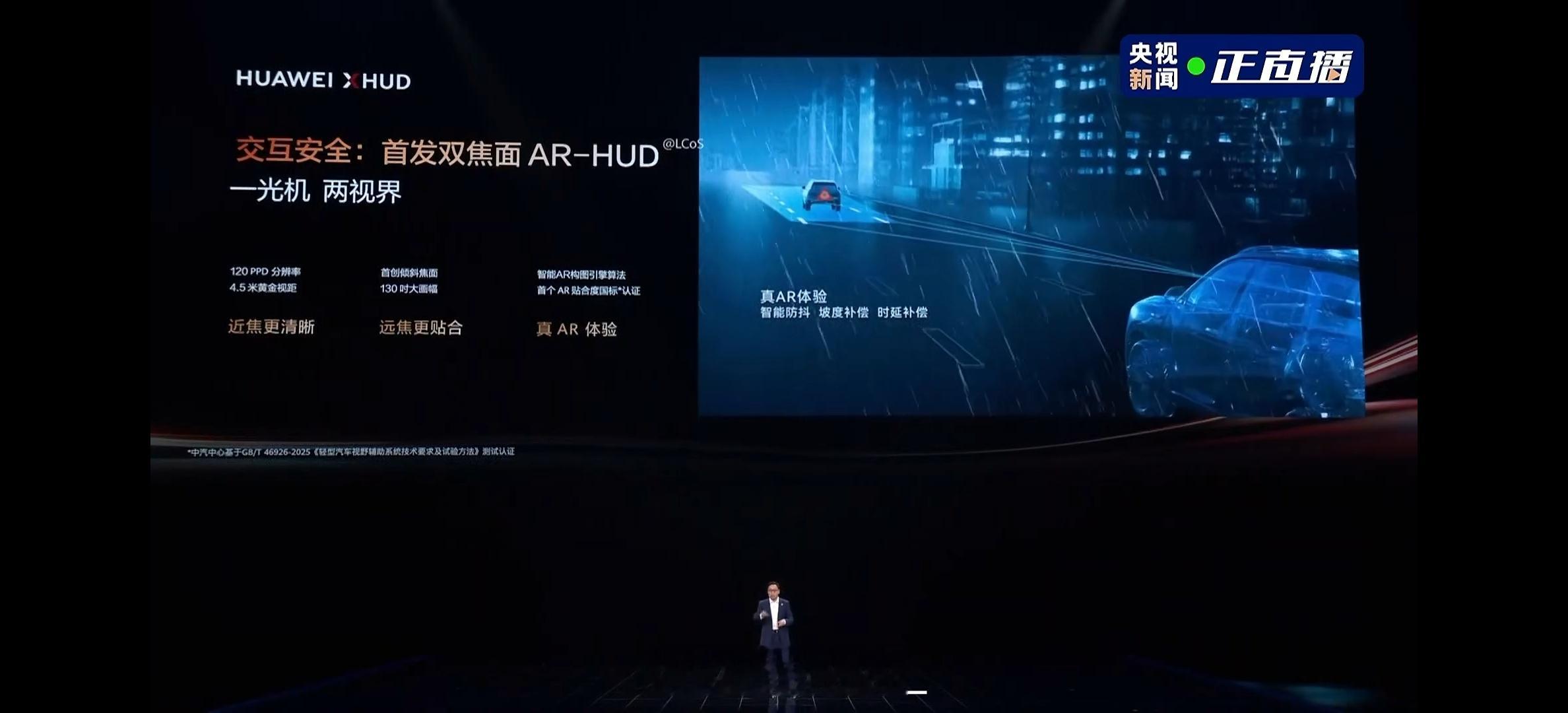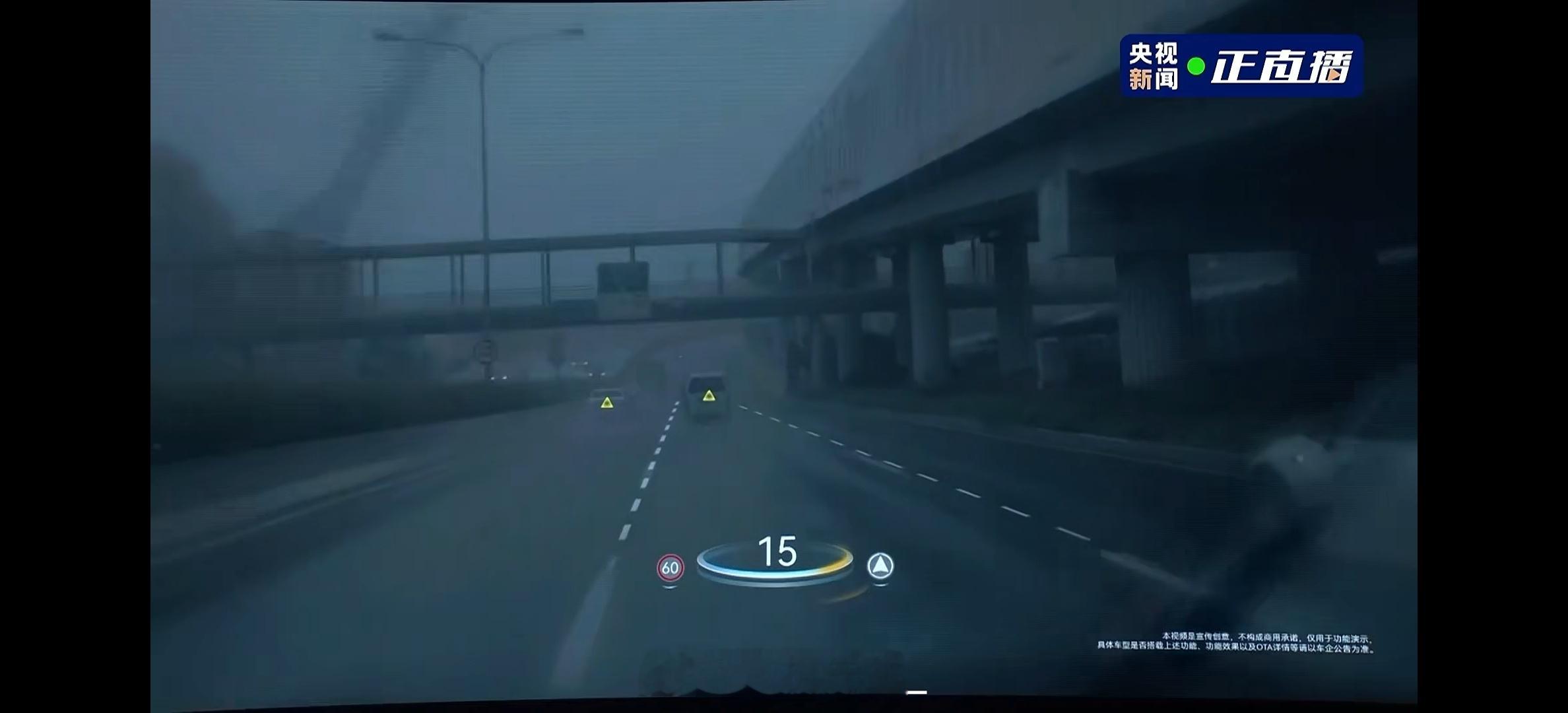 我在高速遇到极端暴雨,就是前挡怎么刮都刮不干净,又在高速上,速度慢不下来。这次华为首发双焦面 HUD ,远焦 HUD可以模拟出车道线,还有把有盲区的车辆做预警标记出来。