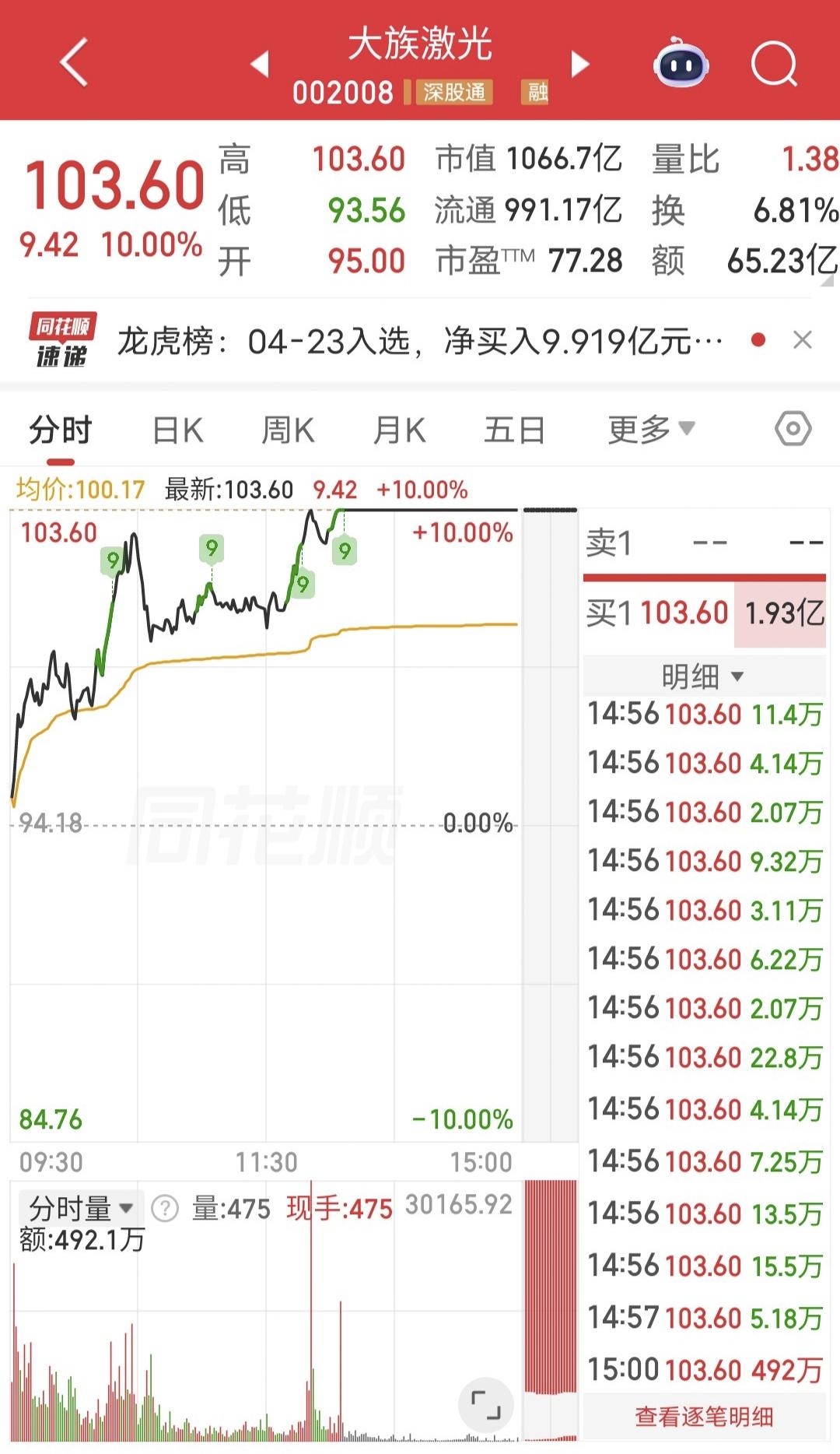 毛老板爆买8.1亿! 今天大族激光盘中涨停。 盘后龙虎榜显示,毛老板买入8.