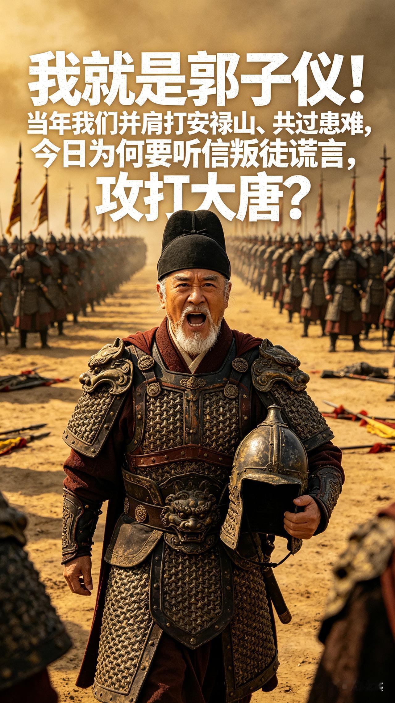 郭子仪走到阵前,缓缓摘下头盔,露出苍老却坚毅的脸庞,大声道:“我就是郭子仪!当年我们并肩打安禄山、共过患难,今日为何要听信叛徒谎言,攻打大唐?”