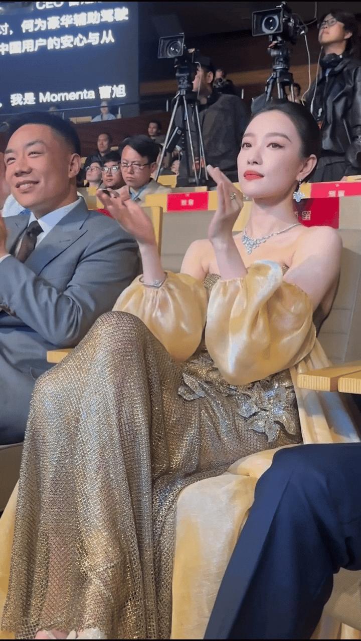 倪妮|凯迪拉克2026新品发布会身穿TRALINH鎏金礼服,佩戴尚美巴黎珠宝,