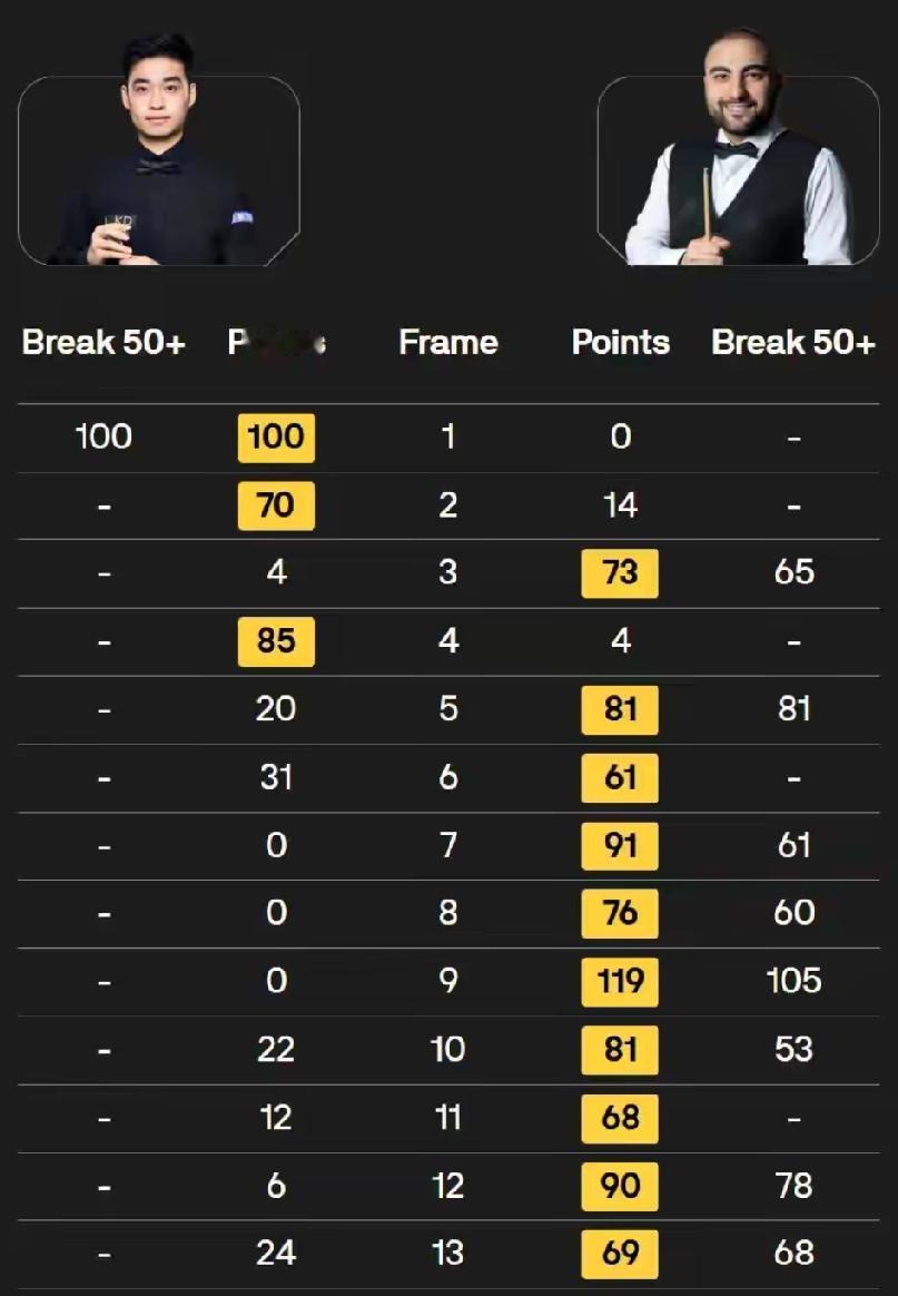 第一阶段1-3落后的瓦菲,抓住了小辉的弱点,轰出一波长长9连鞭,残忍地制造了一场惨案,以10-3将斯佳辉淘汰出局。