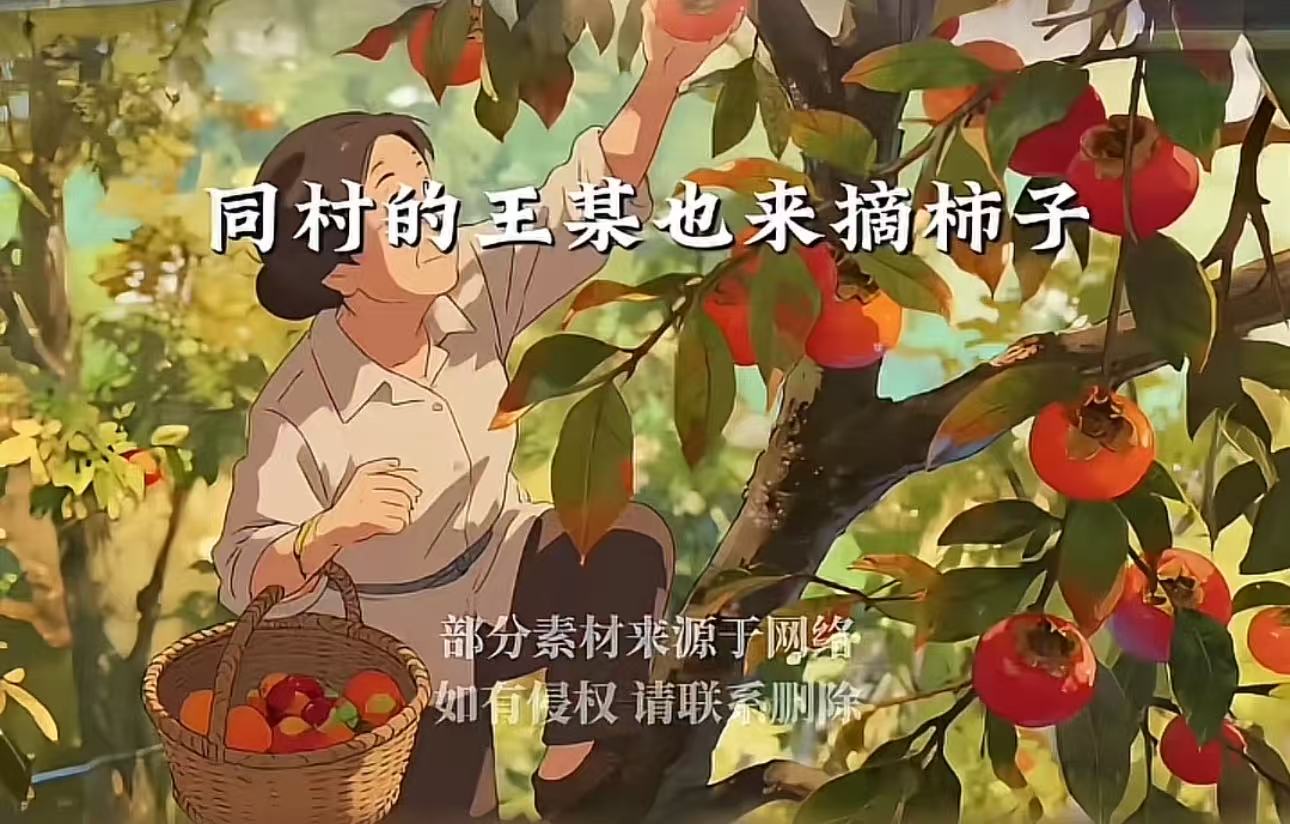 这天,同村的王某路过,看着满树的柿子,心里直痒痒。她也没多想,挽起袖子就爬上了树。
