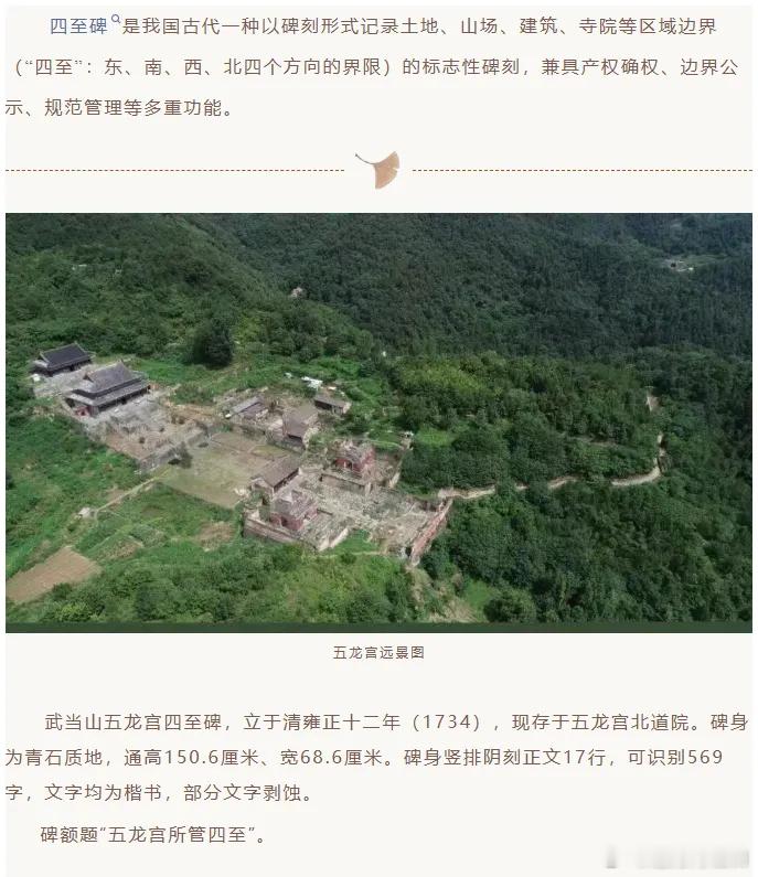 武当圣境丨武当山五龙宫所管四至碑四至碑是我国古代一种以碑刻形式记录土地、山场、建