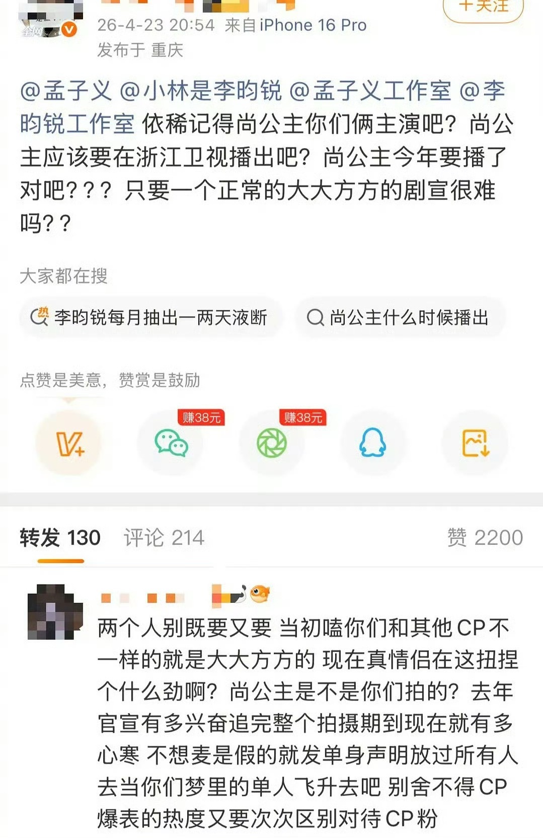 昀牵孟绕CP粉维权,只因为跑男情侣特辑孟子义和李昀锐不在一个组…