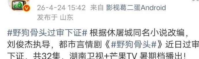 宋威龙 张婧仪《野狗骨头》下证,预计暑期档播出,有期待的吗?