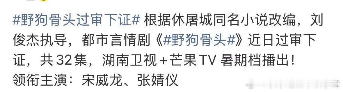 宋威龙、张婧仪《野狗骨头》过审下证 32集 燥候!!!!