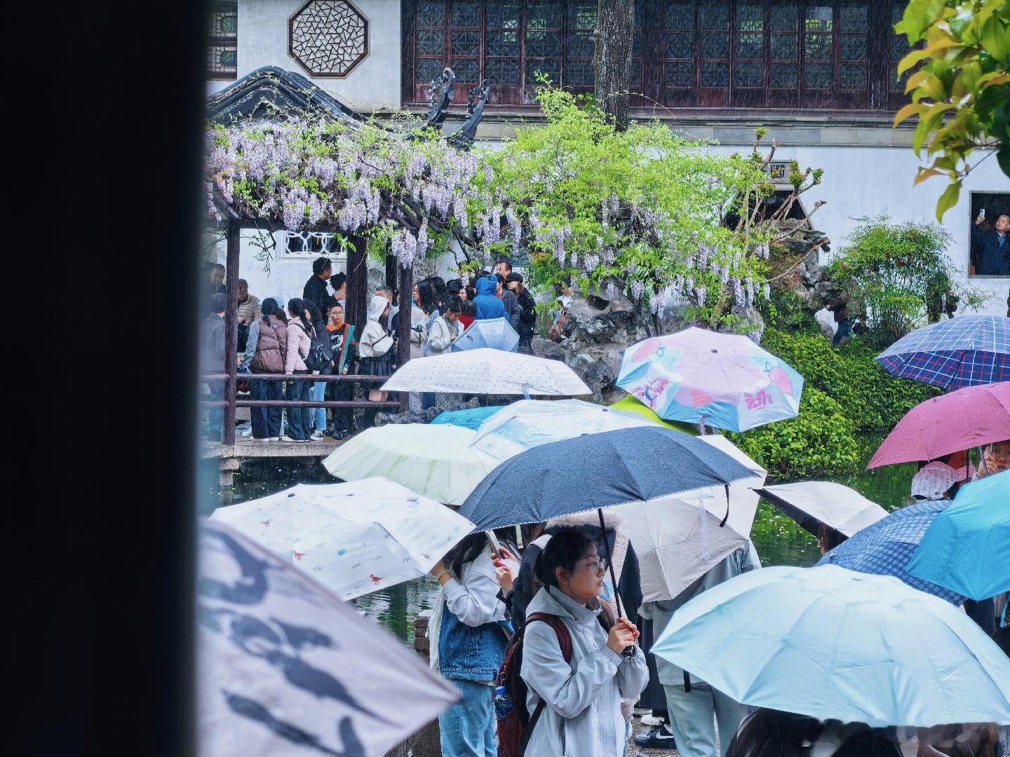 园子里的雨,是苏州春天的私语,落在紫藤花架上,落在黛瓦飞檐间,也落在每一把撑开的
