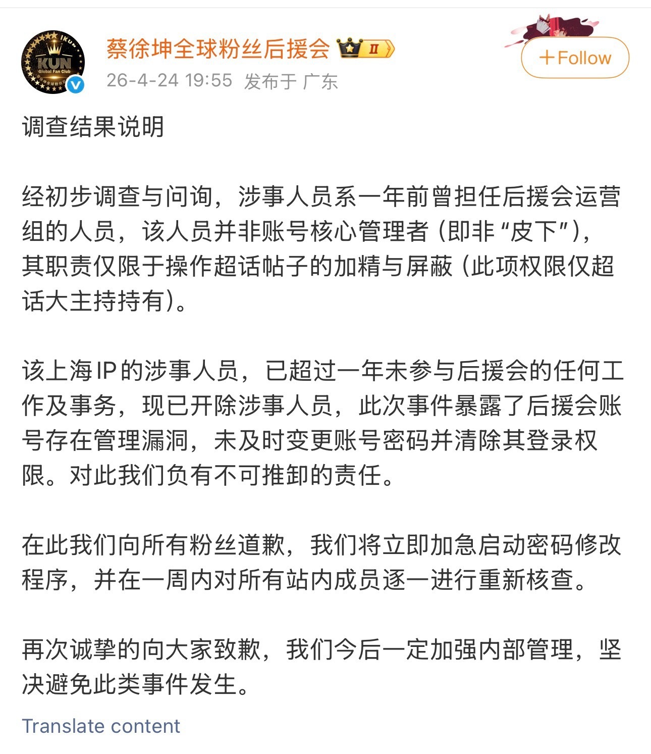 蔡徐坤后援会切错号了,转发了丁程鑫…楼人真是无处不在。