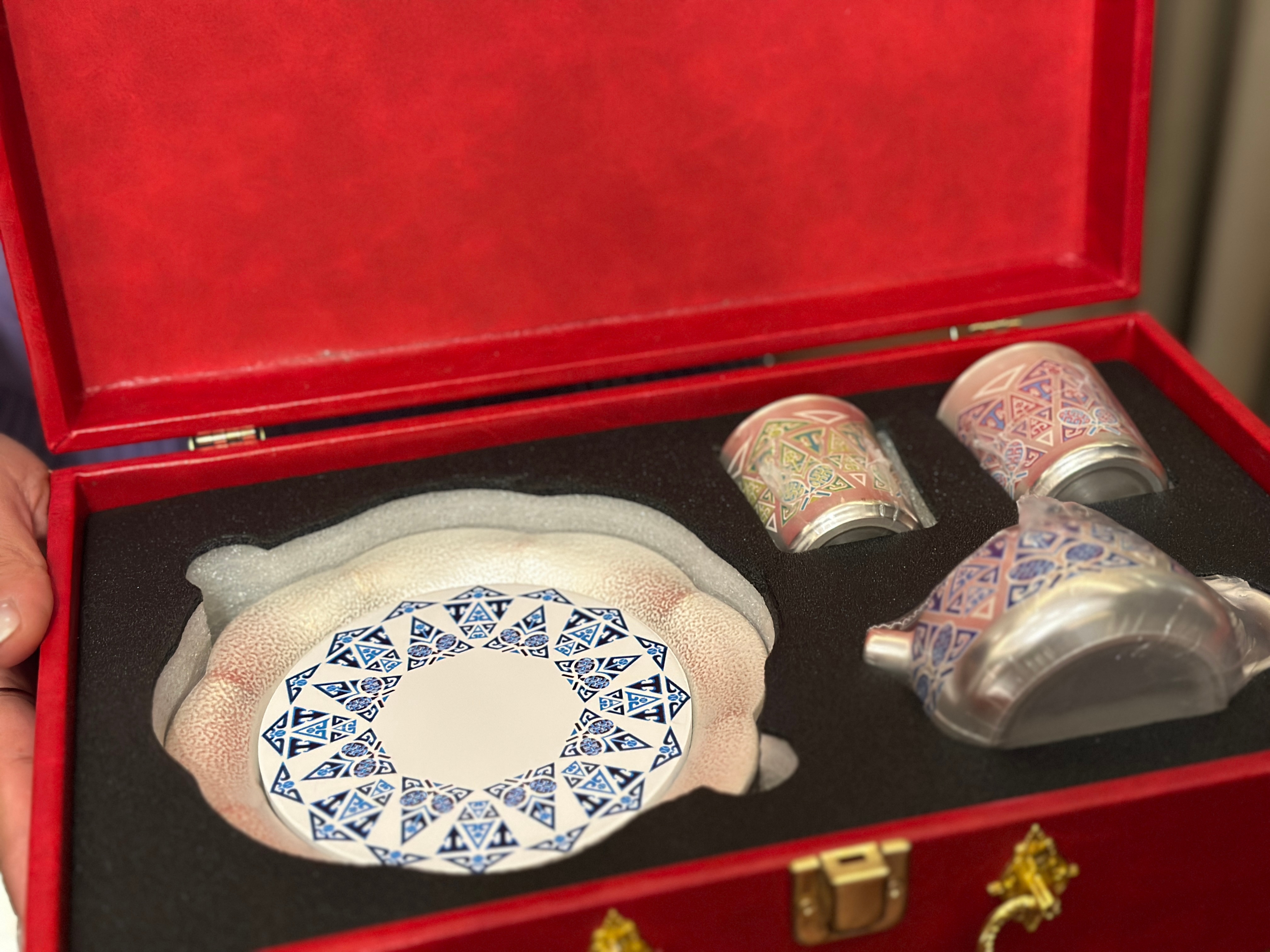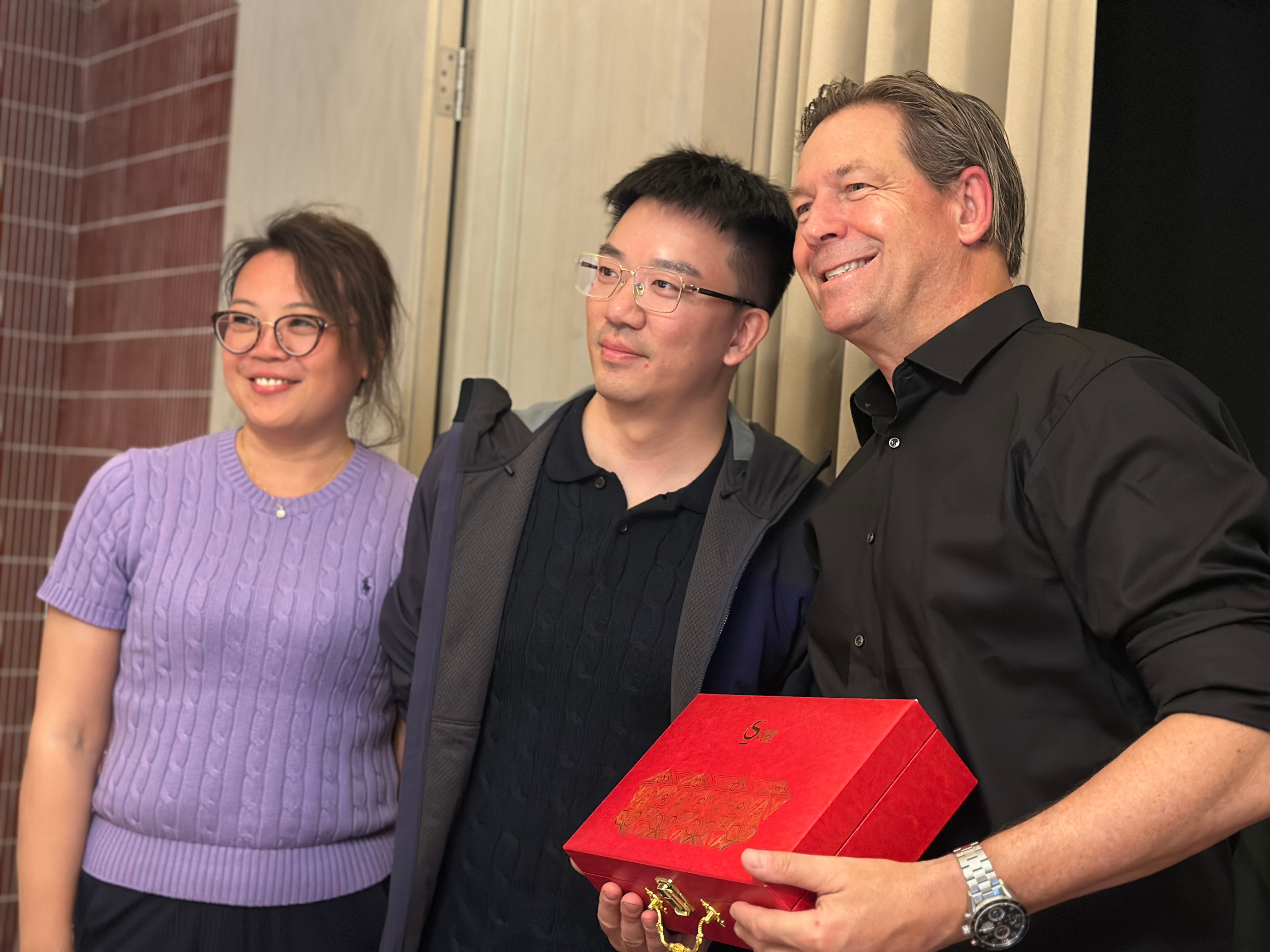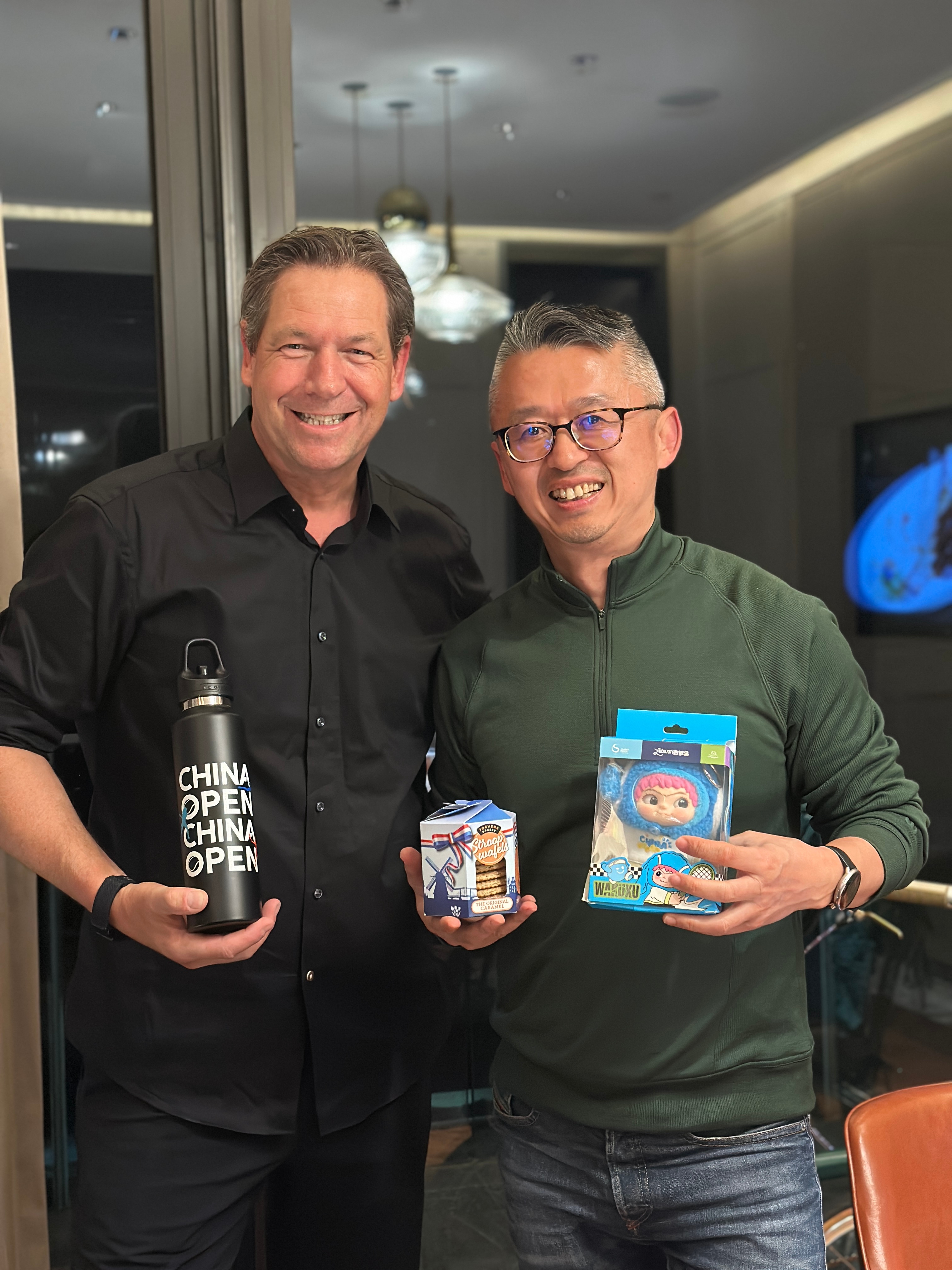 他给中网的几位朋友以及我准备了小礼物,来自他家乡荷兰的点心;论送礼,我们中国人没在怕的,中网的朋友为他准备了工艺品、赛事纪念品以及挑边的银币,让他直呼“你们可把我给宠坏了。”