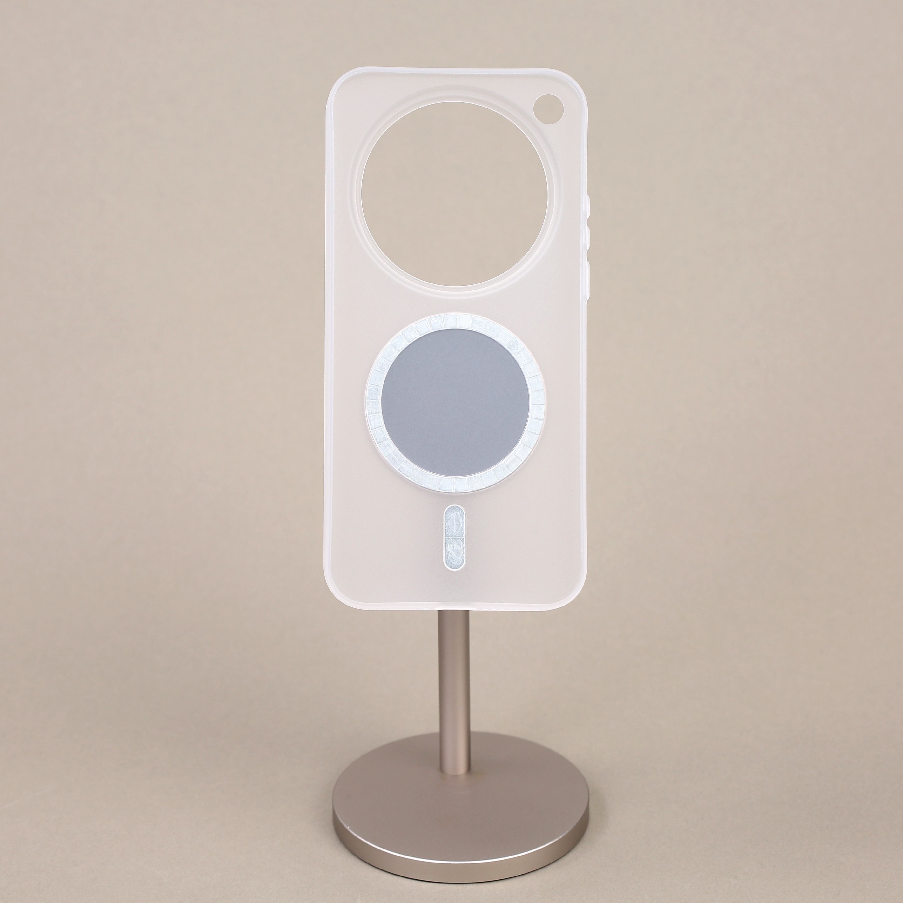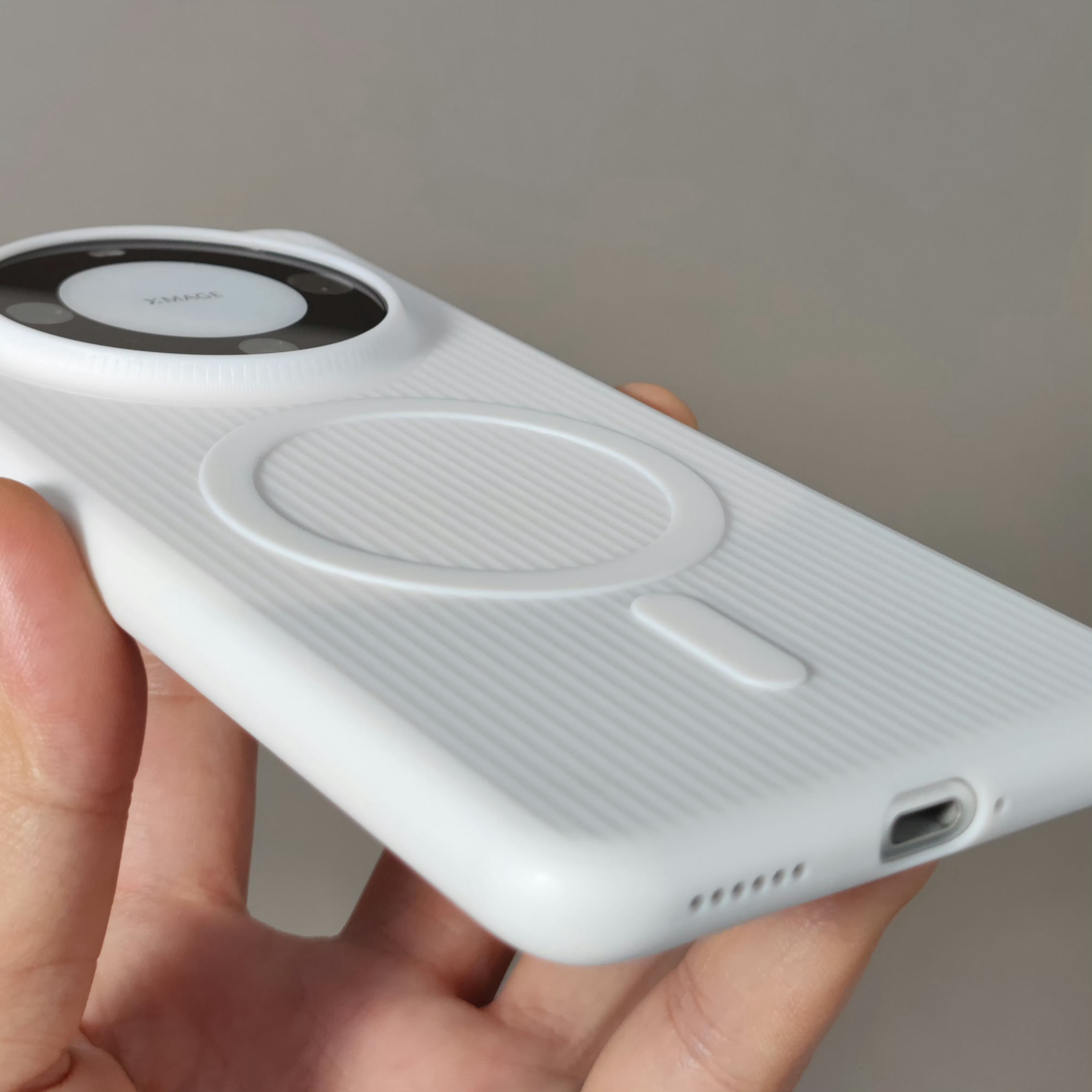 我们尝试过三种 PP 磁吸壳方案,最早是磁圈凸起的(图一),这种方案现在还在采用。后面我们试着把 PP 壳做到1mm 厚度,内部锣槽贴磁铁进去(图二),发现用一阵子磁圈会鼓起来,这个方案宣告失败。内置磁圈方案用在 PC 材质的壳子上就没问题,但是 PP 材质就会有问题。我就在想内置会鼓包,把我外置行不行,然后就去试了下,发现还真不错,就拿小米17Ultra 的去做了一些出来。也许这个方案真就解决了 PP 磁吸的一个痛点