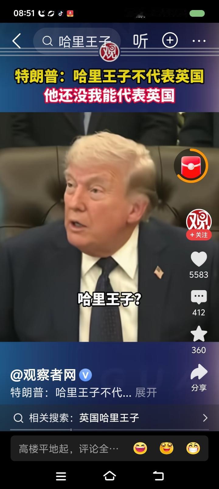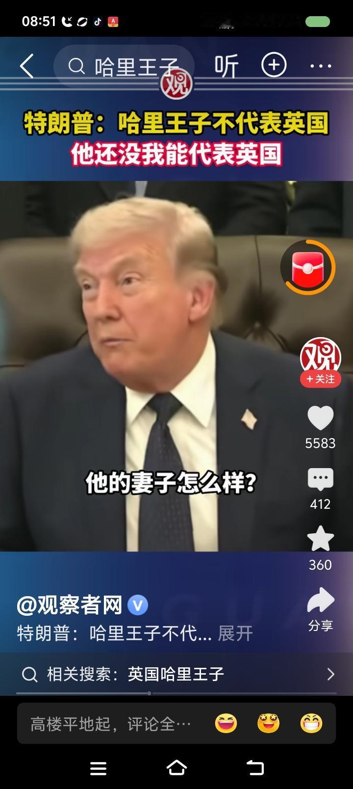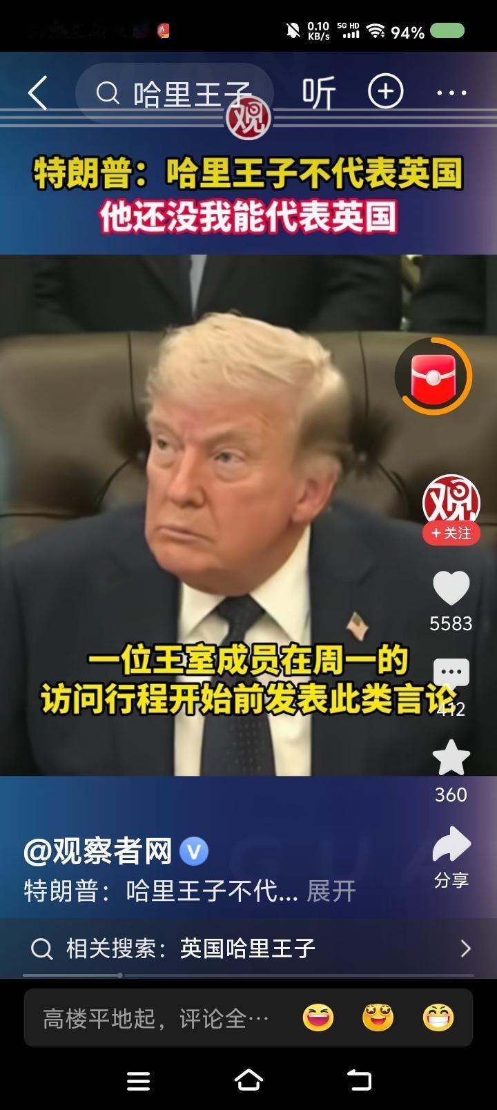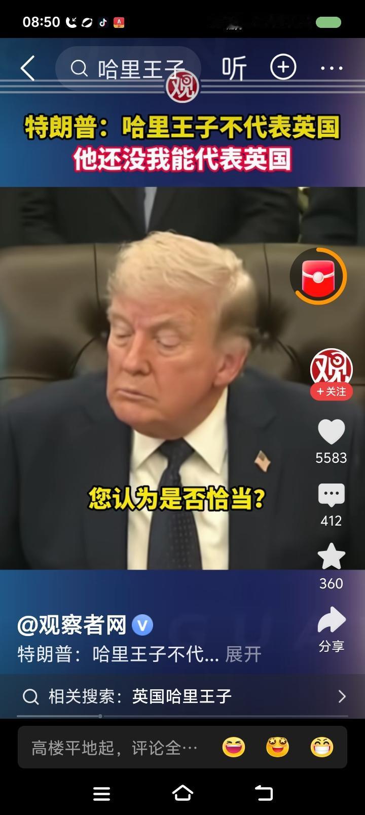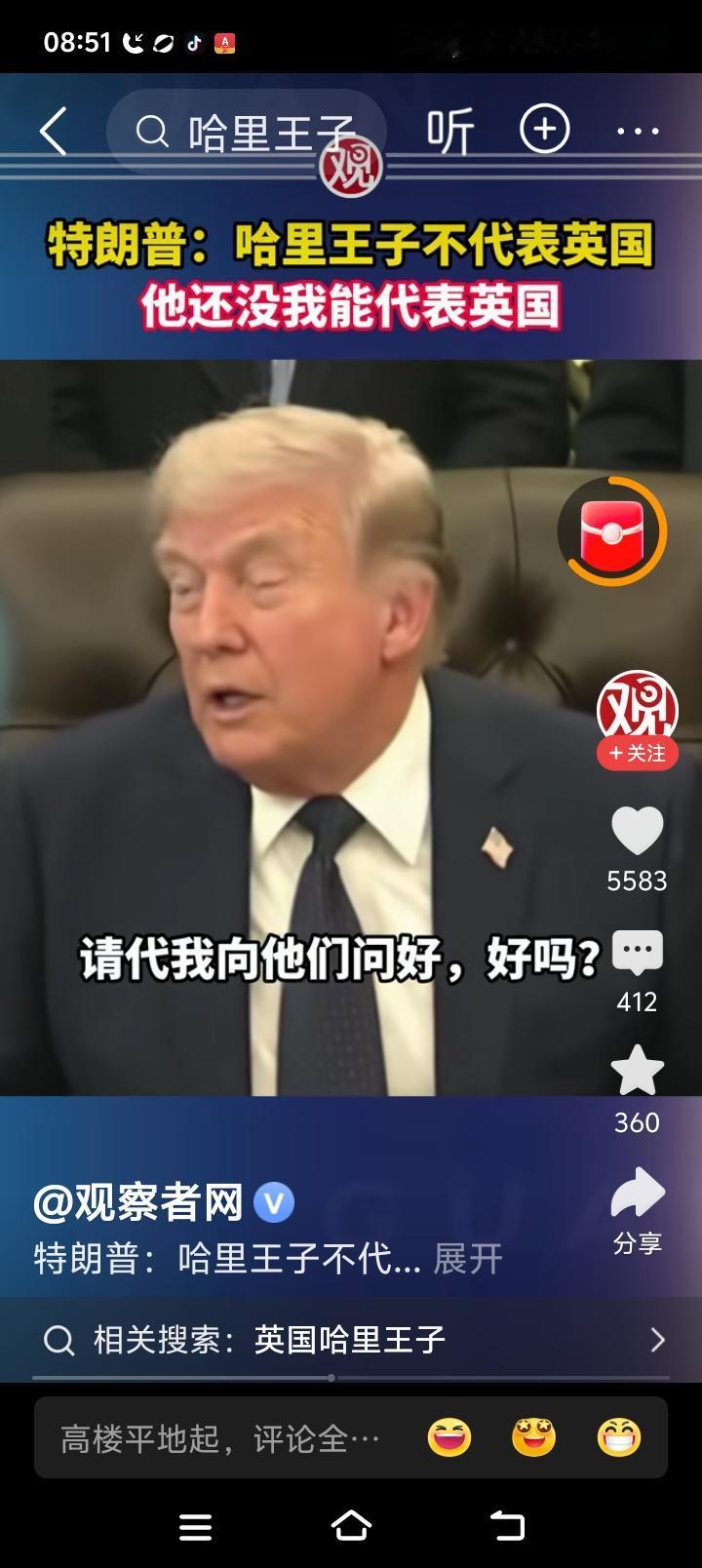 网上视频:记者问特朗普:“哈里王子说希望看到您在结束乌克兰战争方面采取更多行动,你认为是否恰当?”
