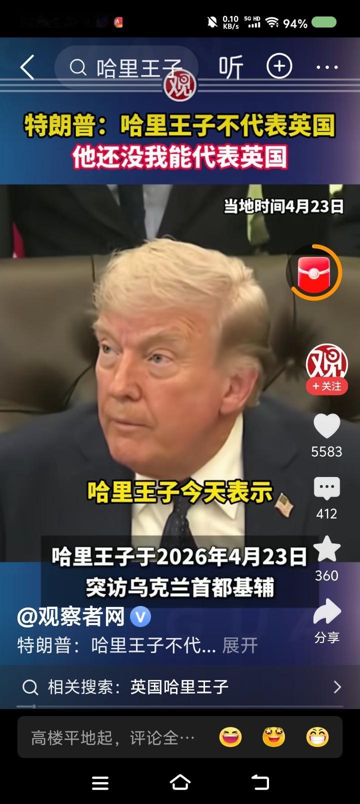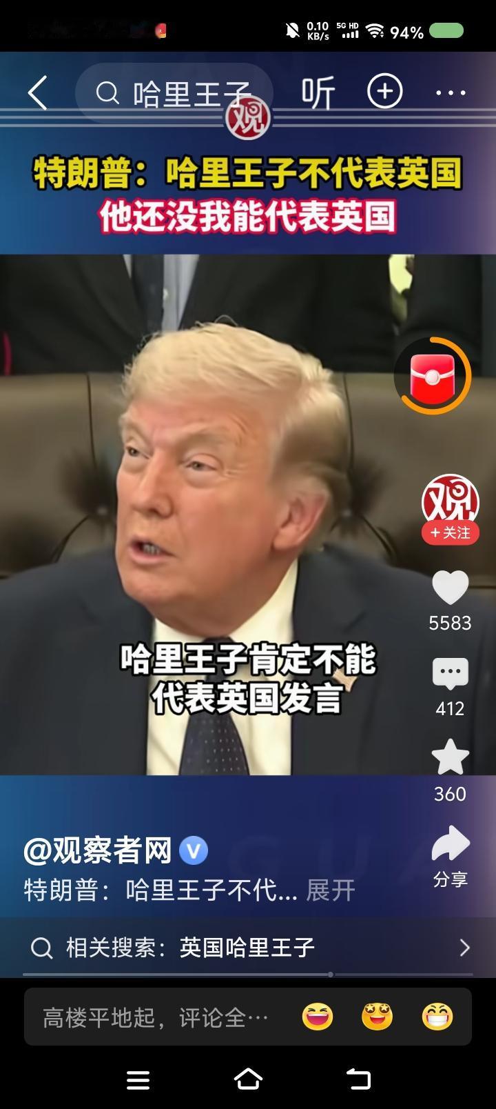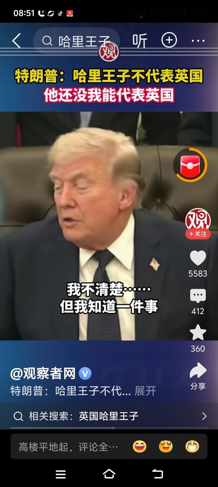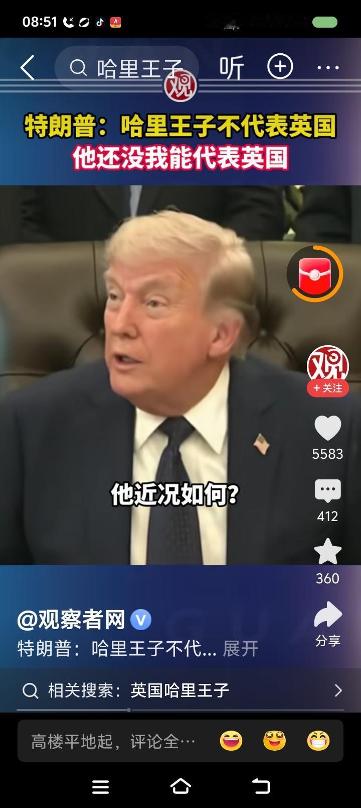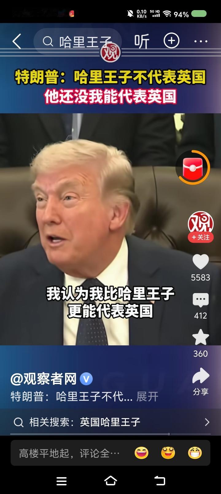 网上视频:记者问特朗普:“哈里王子说希望看到您在结束乌克兰战争方面采取更多行动,你认为是否恰当?”