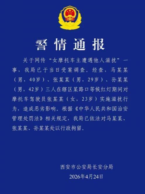 两天后,当地警方发布了通报,通报里说,三名男子对小鱼实施了滋扰行为,造成不良影响,根据相关法律,对他们进行了行政拘留处理。