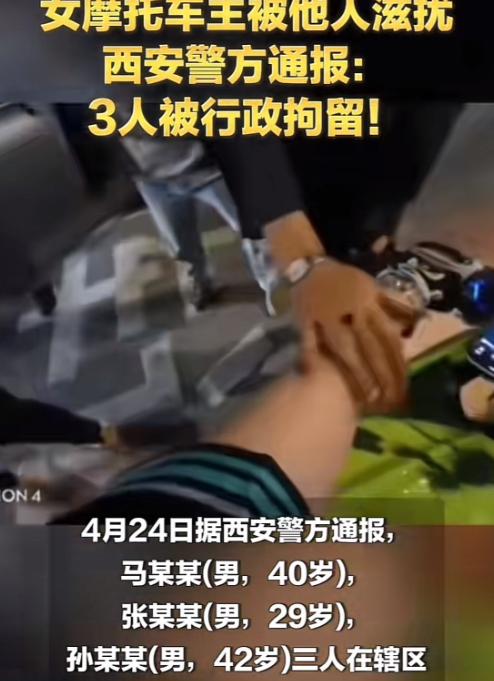 陕西西安,23岁女孩晚上骑摩托车回家,在路口被一辆轿车里的3名男子调 戏,要坐女