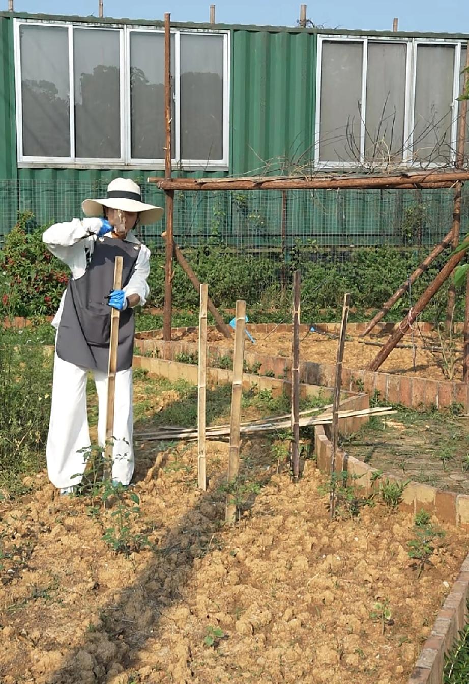 杨乐乐上次种的桑树,还有番茄树苗都长得很好,这次来还给番茄树插了根竹条在旁边,方便支持番茄树,让它方便爬上去长高。