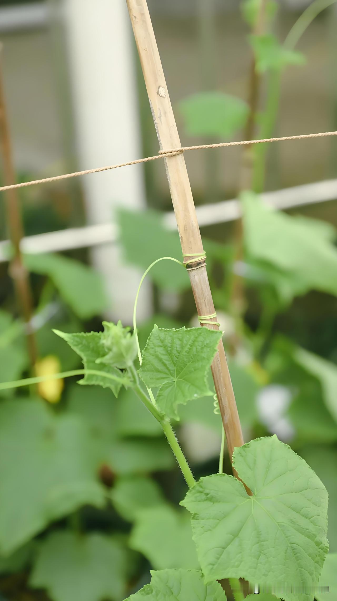 每片叶与主干间的黄瓜须也得及时掐除,三个须的养分消耗约抵一个黄瓜的养分需求,掐除可节省养分。