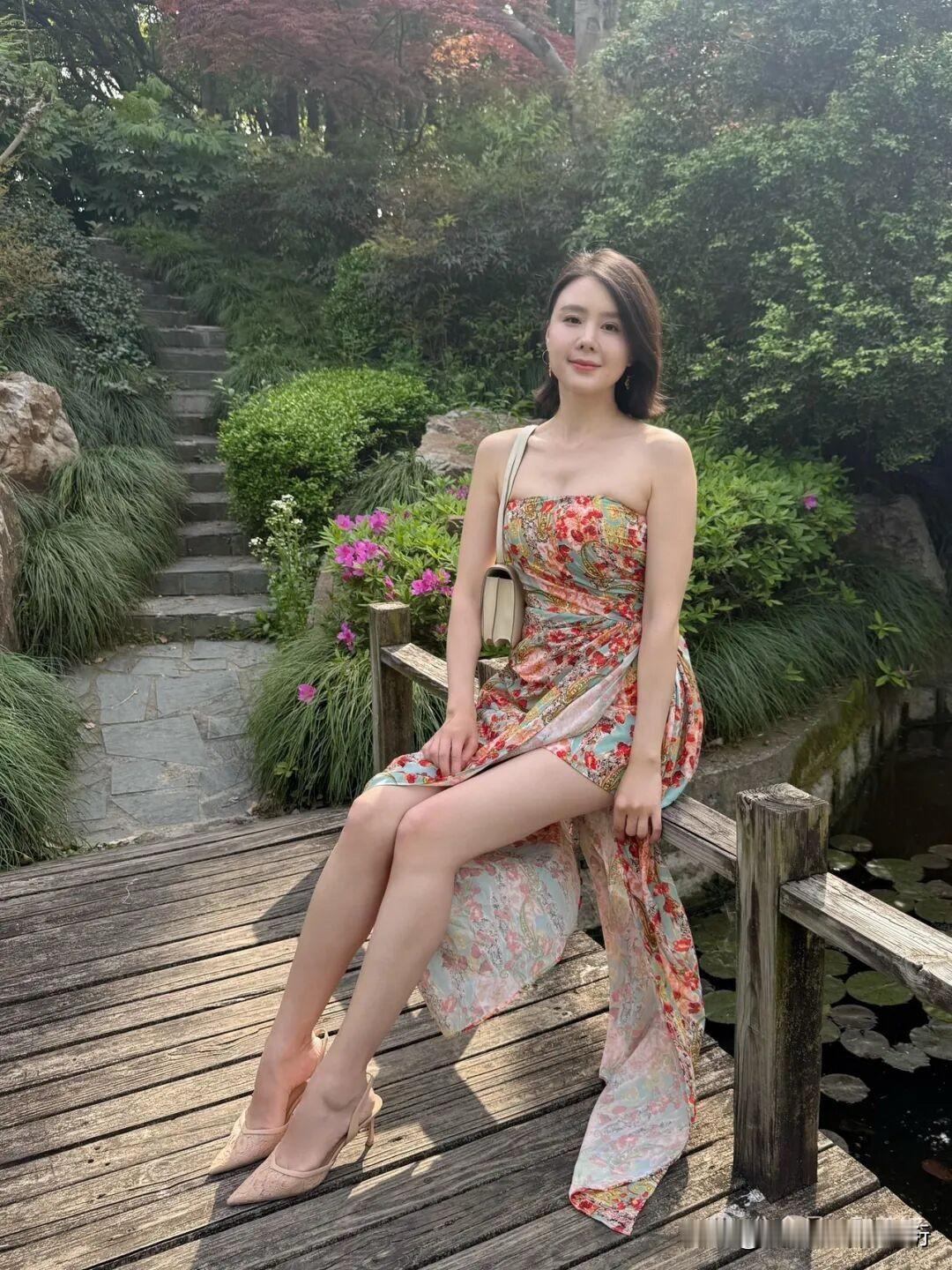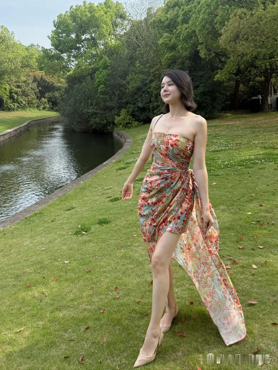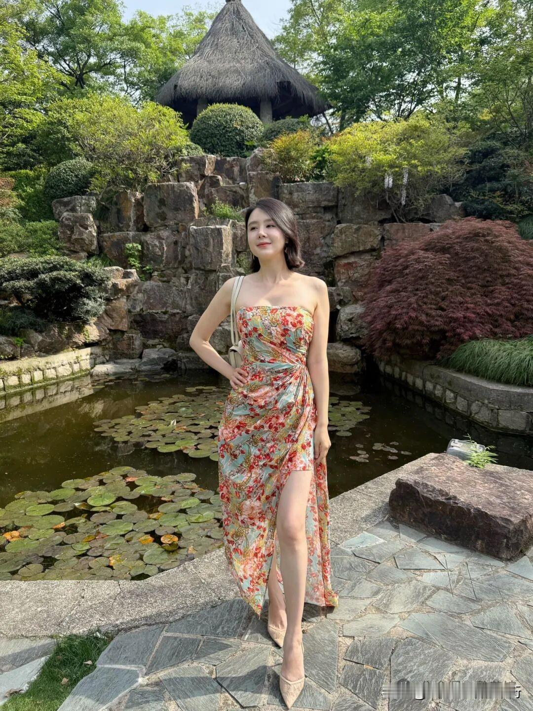 碎花裙裁进园林的夏,荷叶与石瀑作陪,每一步都踩着诗意的涟漪~ 草亭垂着光阴的影,花裙曳着浪漫的风,池水潋滟处,全是夏的鲜活絮语。 夏光漫过石径,花裙如打翻的调色盘,与池上绿意相拥,把园林酿成了行走的诗