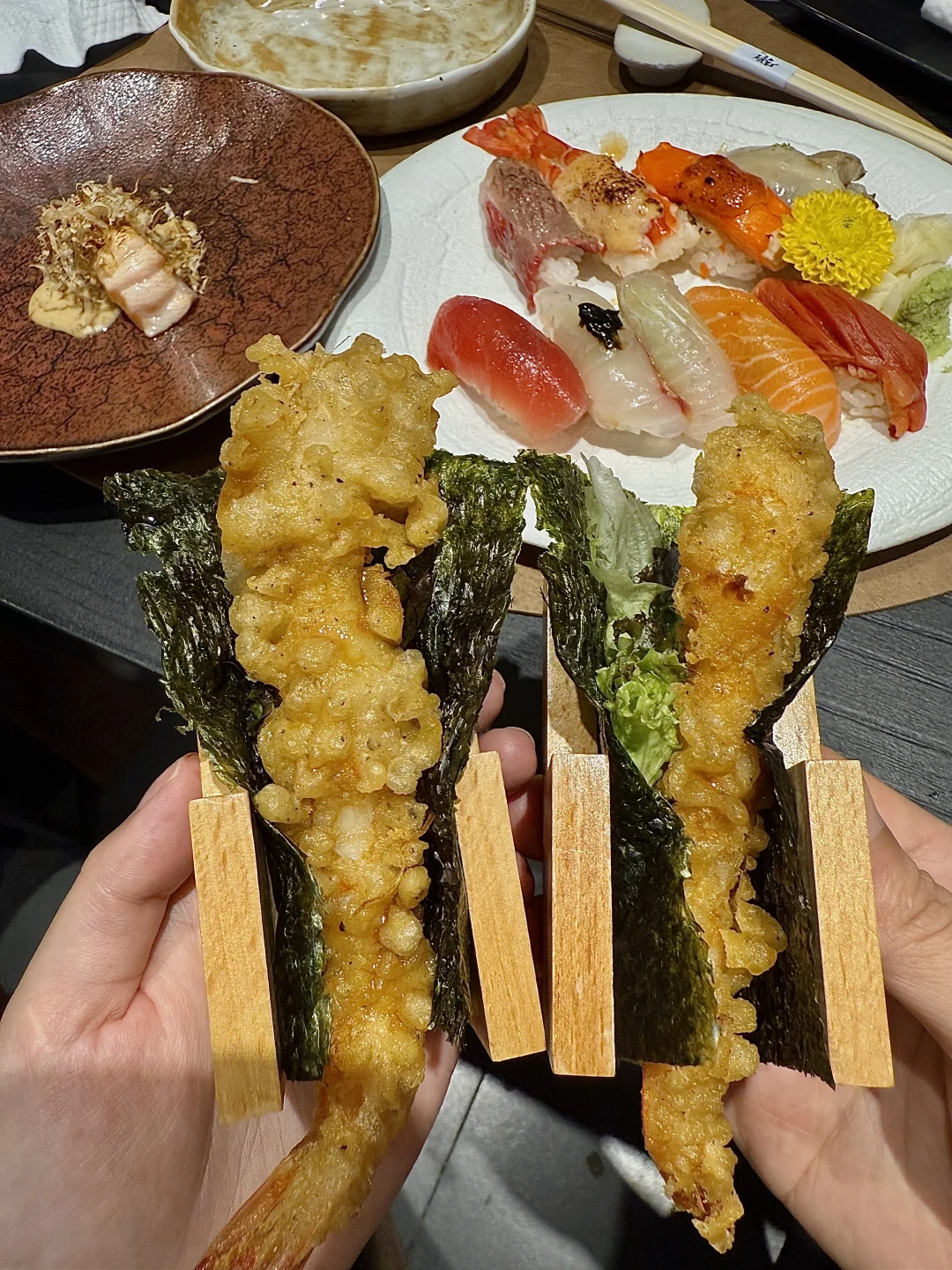· 时令鱼生捞饭、M3牛小排、天妇罗虾手卷都有