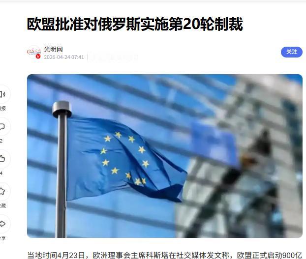4月23日,欧盟这边终于坐不住了,正式批准了对俄罗斯的第20轮制裁,同时还咬咬牙决定向乌克兰发放900亿欧元的巨额贷款。
