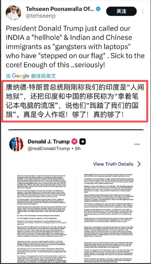 他还瞎猜这些移民对美国一点儿忠诚度都没有,跟欧洲裔美国人还有他们的祖先比起来,差远了,特朗普这一转发,就等于默认了萨维奇这些极端又恶心的说法,这一下,中美、美印原本就有点紧张的关系,变得更糟糕了。