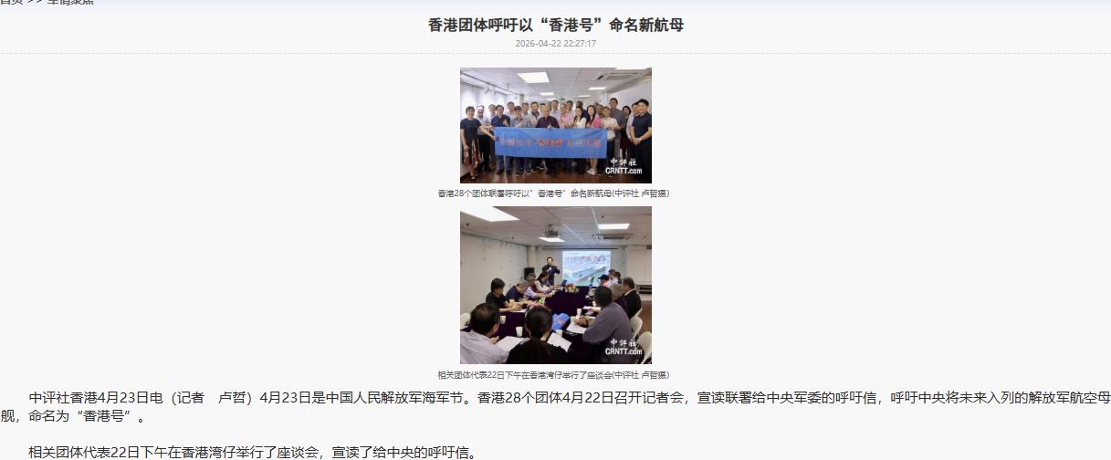 座谈会的时候,香港现代军事出版社社长刘澜昌还拿出一组数据,他说现在解放军的航母都是用沿海省份命名的,香港是省级行政区,按《海军舰艇命名条例》来说,完全有资格。