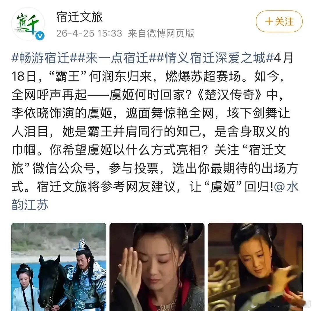 李依晓也要去苏超了,宿迁文旅邀请完项羽何润东,又邀请了虞姬重回故里