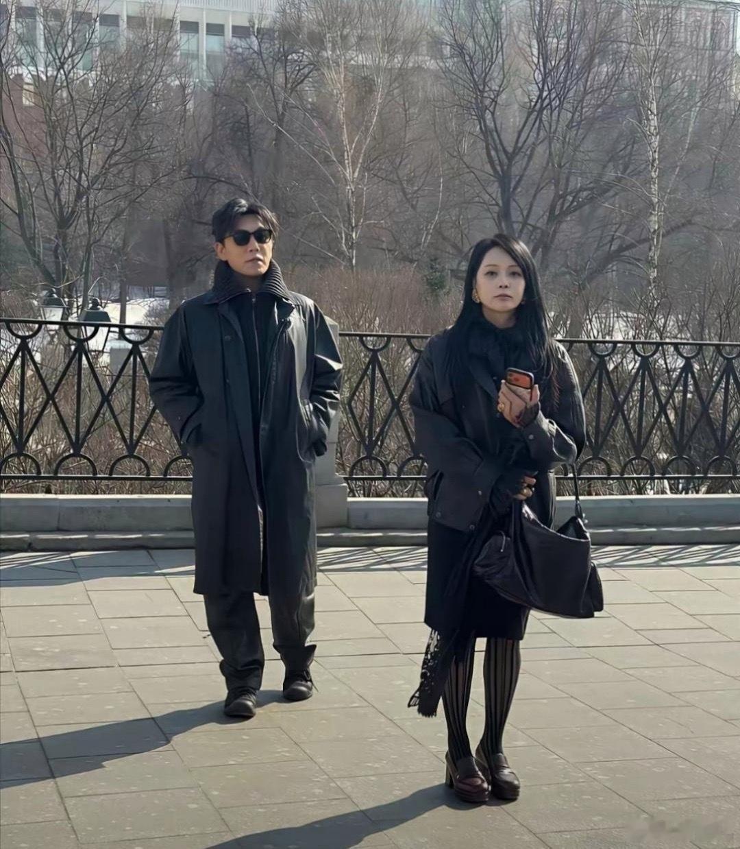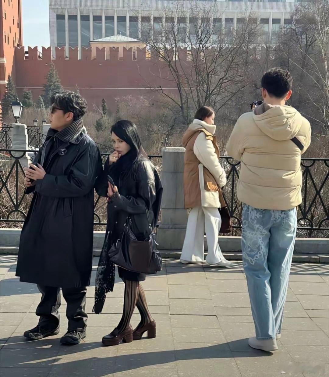 偶遇伊能静和秦昊,两个人看的个子都不高。