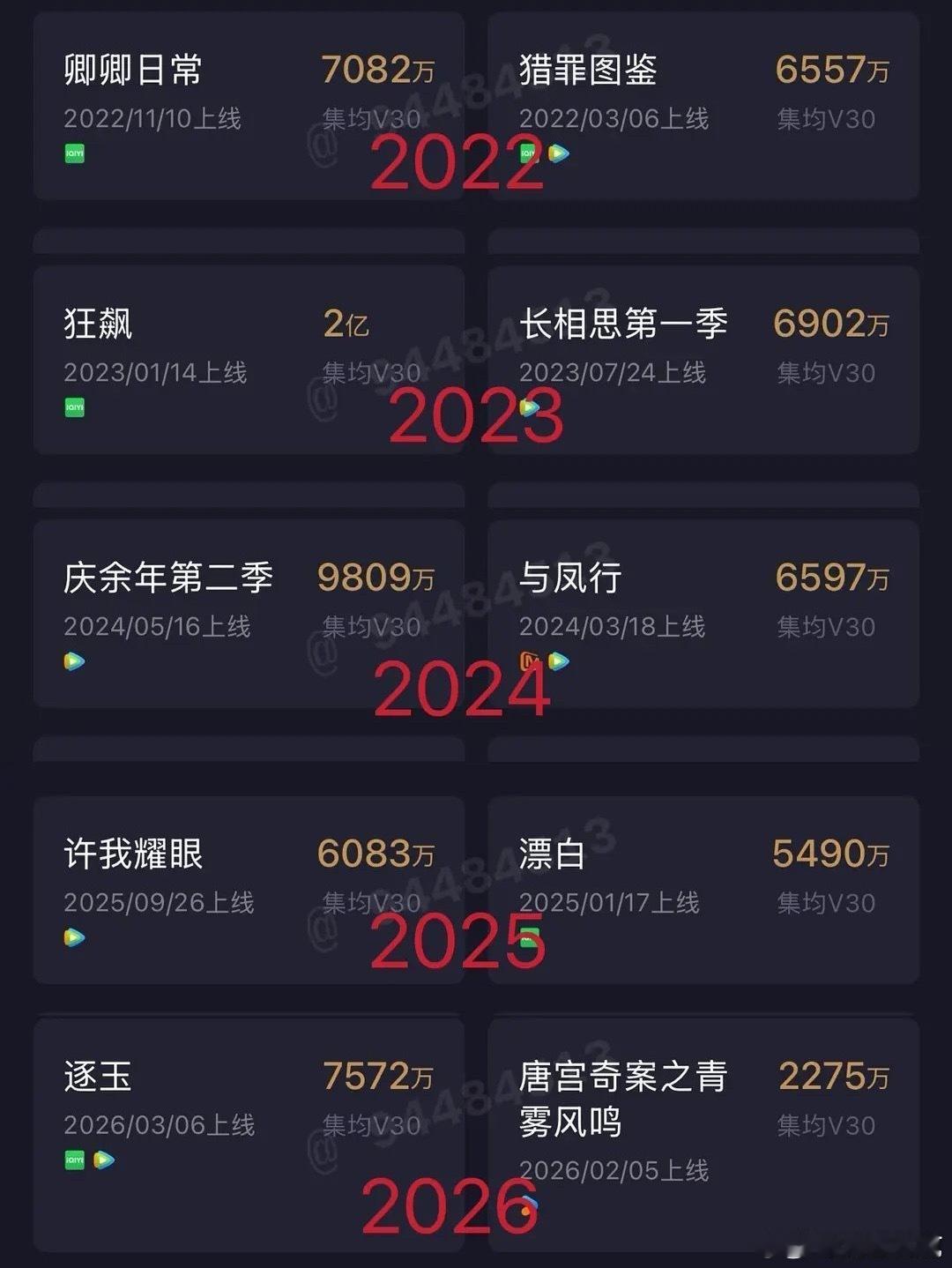 逐玉v30固定7572万,是近五年除了狂飙、庆余年2数据最好的一部