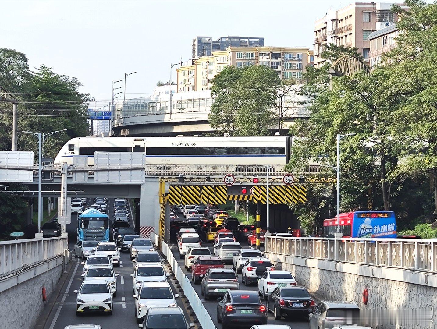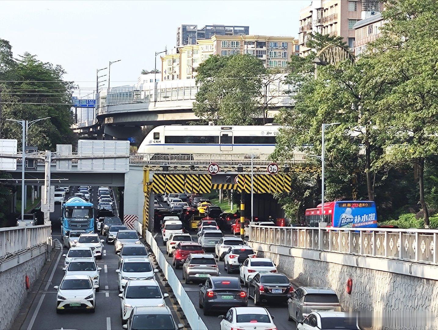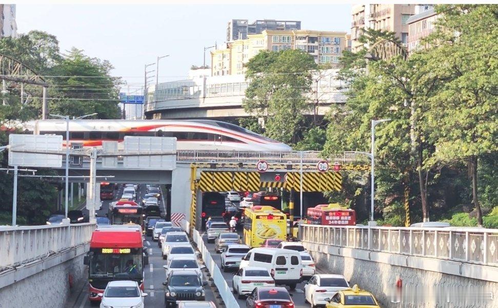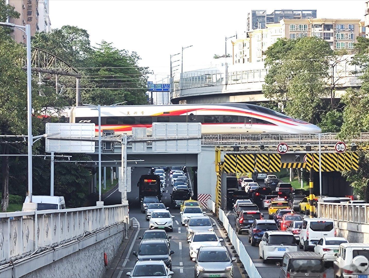 下午闲时才有绿皮火车经过广州站,下午忙时都是动车高铁往来广州站,2~7分钟一趟。