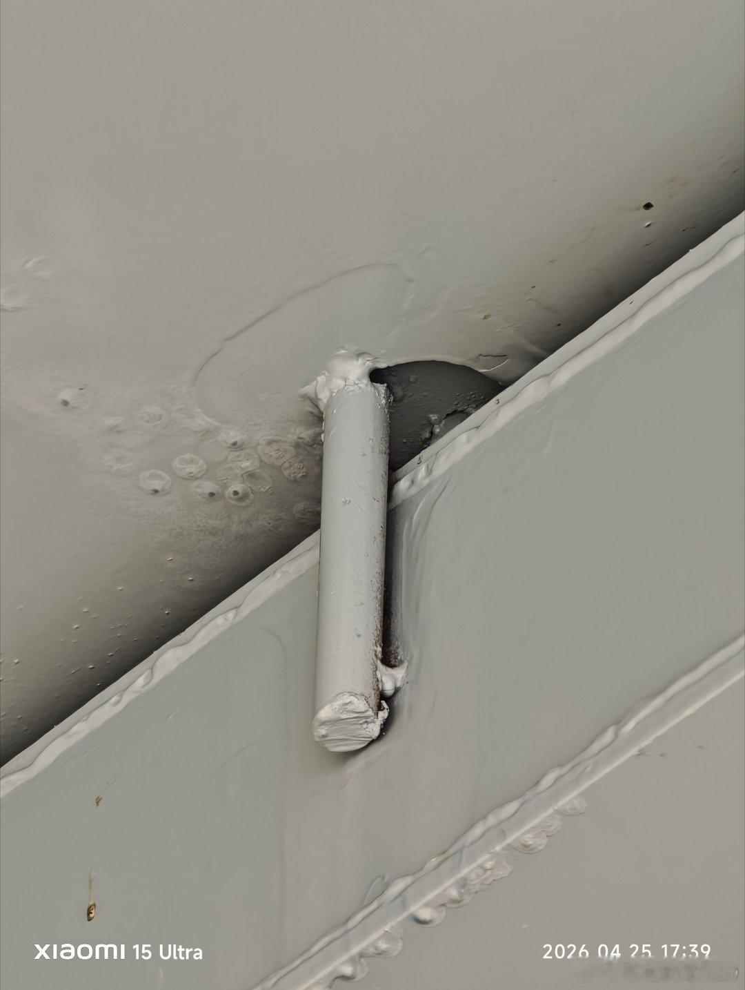 图2:三角加强筋端部为形成连续焊缝图3:T形接头焊道偏移图4、图5:油漆鼓包、圆钢焊缝成型差,疑似不按图施工图6、图7、图8:火焰切割后未补涂油漆图9:油漆流挂图10、图11、图12:连续密集超大气孔、焊道卷边、咬边图13:焊丝残留图14:油漆开裂,焊缝成型差图15:词穷,如此劣质的焊缝不知道如何形容图16:巨大焊瘤图17:对接全熔透焊缝未焊满图18:焊缝金属未熔合
