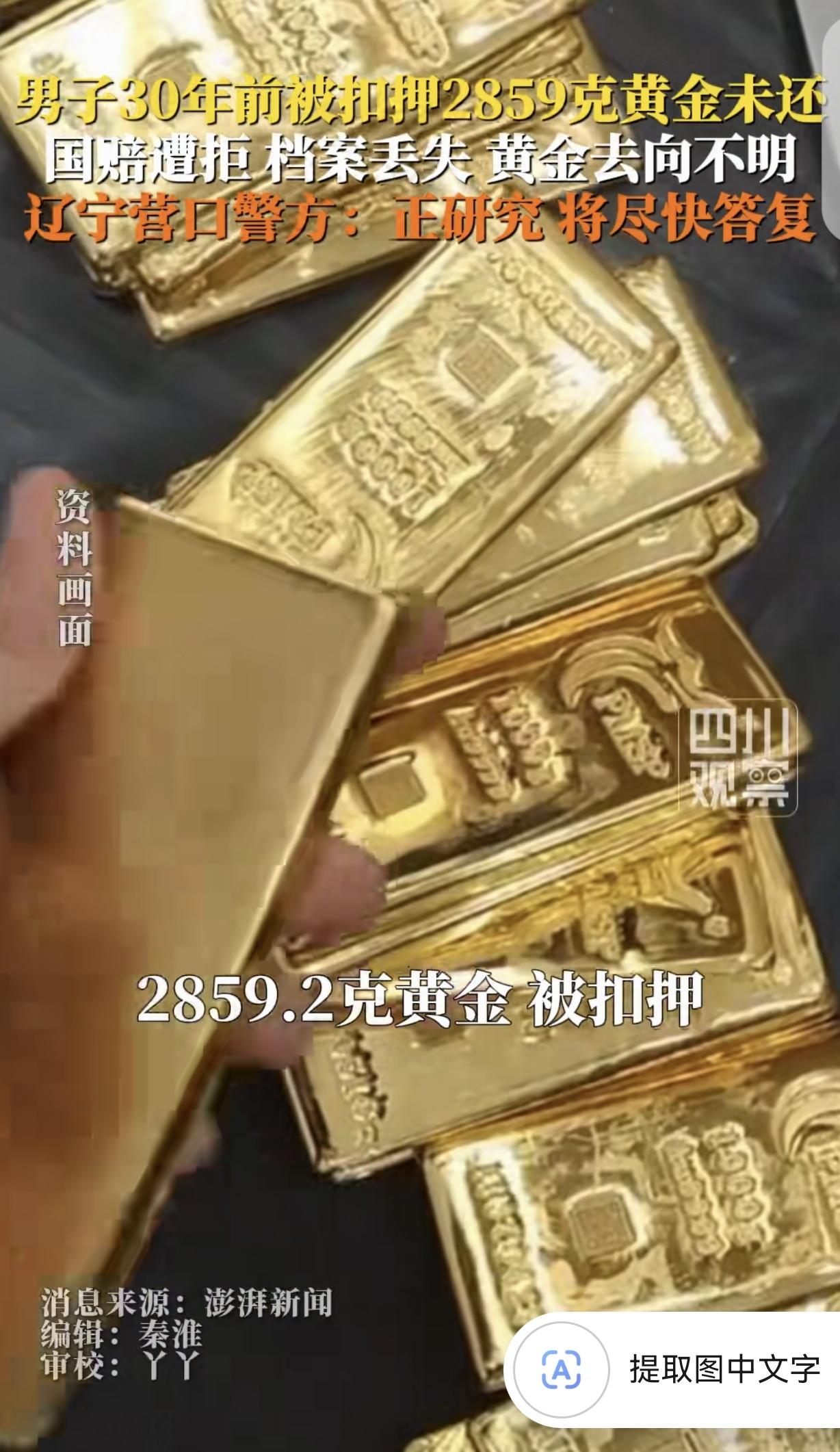 辽宁大连,一男子30年前合法买了2859.2克黄金,在机场被认定走私抓获,黄金被扣押,妻子交了5万元保证金,他才被取保候审,可30年过去了,他也没拿到黄金,还有撤案决定书、终止侦查决定书、解除取保候审通知书,男子申请赔偿,却说 "超过时效" 不受理,而且先前案件承办人去世,后来承办人退休,而且洪水导致银行档案丢失,没办法查证黄金去向,男子不服,提起复议!