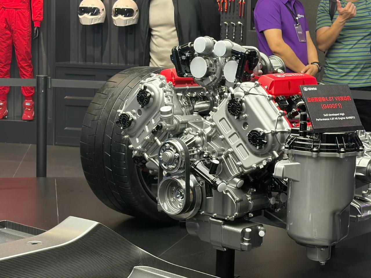 因为现在还在专注研发大排量发动机的中国车企,只剩长城和吉利了。比亚迪不玩了,新势力根本就没有燃油车资质,北京车展上,别人家展台C位是固态电池、城市NOA,长城的C位是一台红色缸体的V8发动机——在一溜的屏幕和代码中间,摆了一台烧汽油的机械心脏。