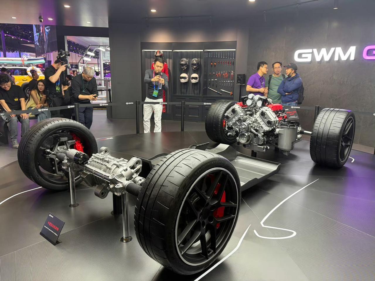 当行业都在比算力、比激光雷达数量时,长城展台却在比缸数。其实这台发动机并非传统的燃油机,而是预留了P2电机接口,未来将融入Hi4-T混动系统,综合功率超600马力。