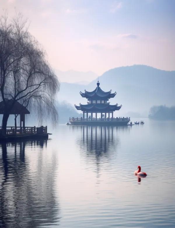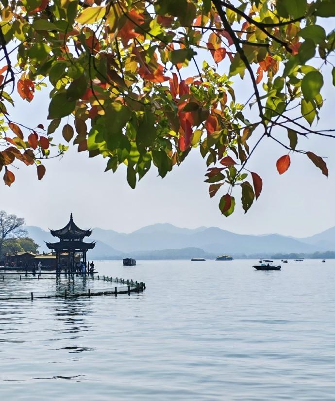 早就听说,西湖“春有苏堤烟柳、夏有曲院风荷、秋有平湖秋月、冬有断桥残雪”,每一季皆有独特韵味。果然名不虚传。要是春天去,就漫步苏堤知春晓,桃柳夹岸,晨雾中满是生机,仿佛走进了一幅水墨画;要是夏天去,就一定去曲院看看风荷,莲叶与亭台相映,清凉又惬意;我是秋天去的,平湖秋月静谧,夜月色水光交融,诗意满满;要是冬天去,看那白堤的断桥残雪,自带《白蛇传》的浪漫。