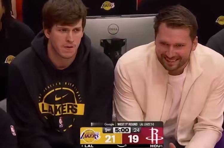 湖人东里两巨头坐在板凳席看球,表情是一喜一忧。 东契奇,2025年夏天已与湖人