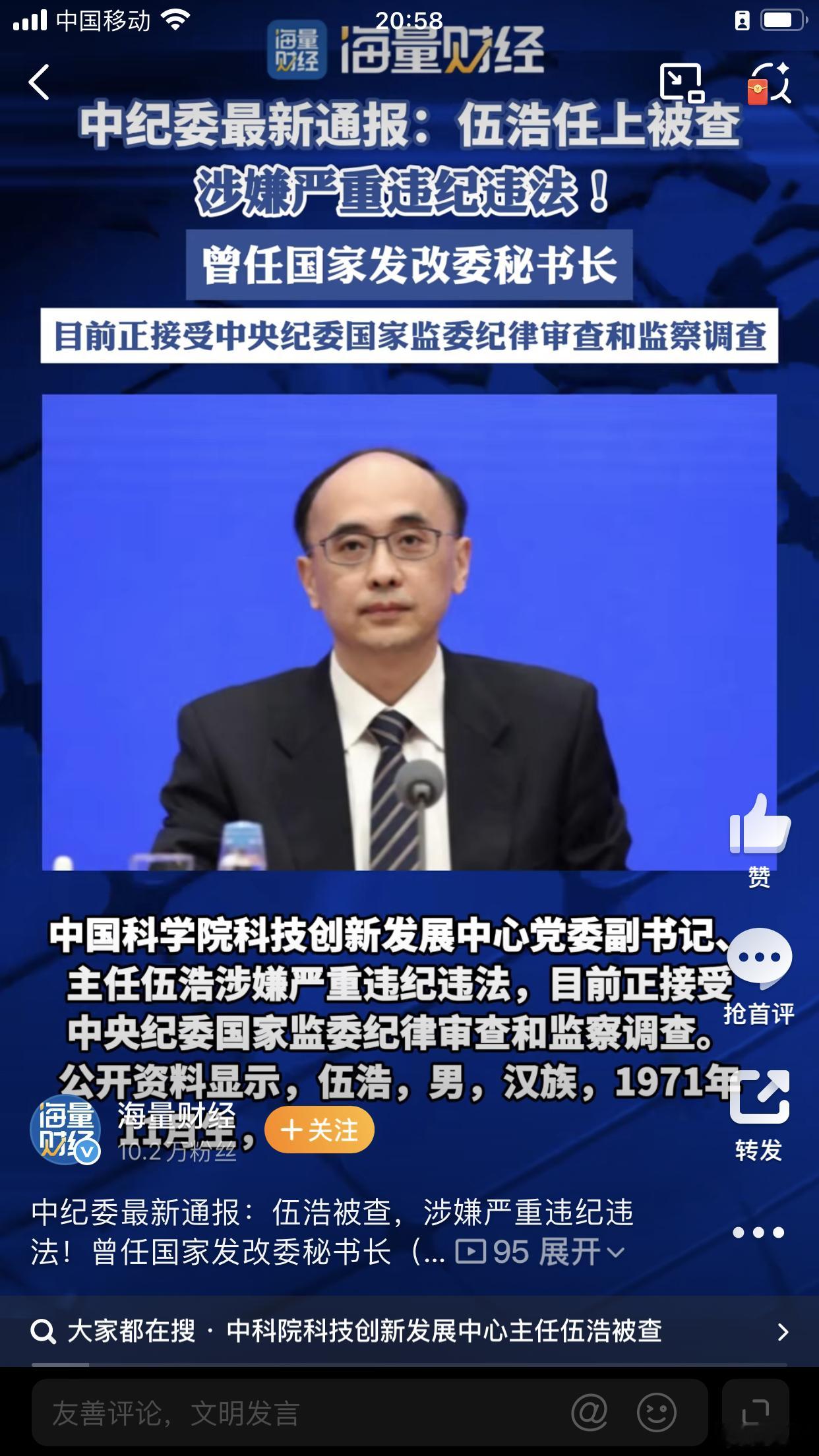 第二个伍浩,高新技术管理领域已经相当于专家,甚至六年前就居位高位,发改委副秘书长,秘书长,人特别低调,大多数人都以为将升副主任,因为五十岁不到就升任副秘书长关键岗位。但去年初,就不妙,调到了中科院,看看图三中,声称管理雄安、怀柔项目事发,其实不然,估计问题出在发改委任上。