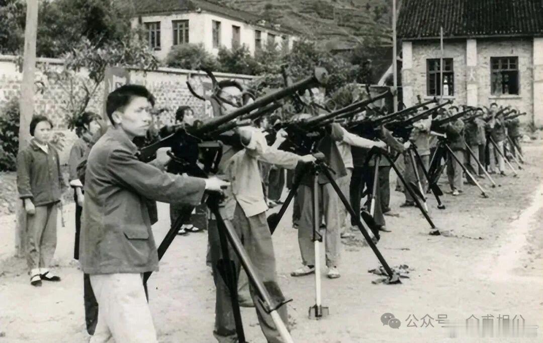 【七十年代末民兵在进行高机防空训练】