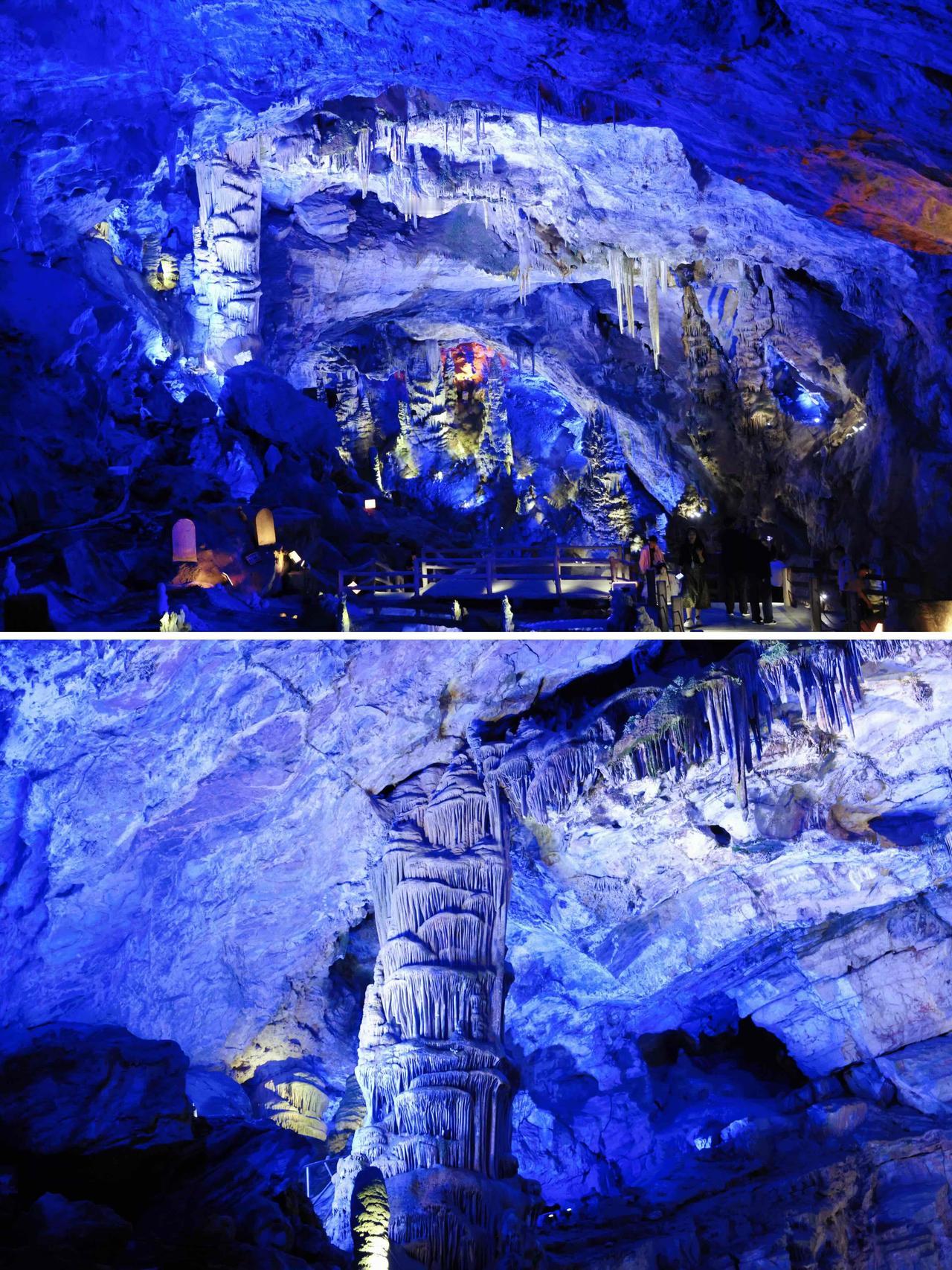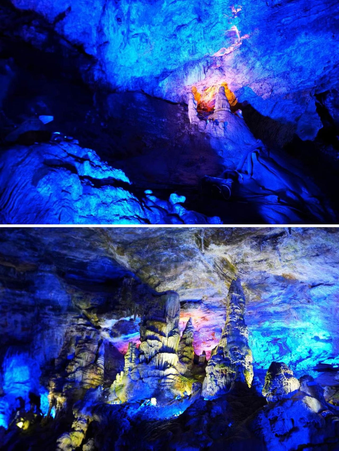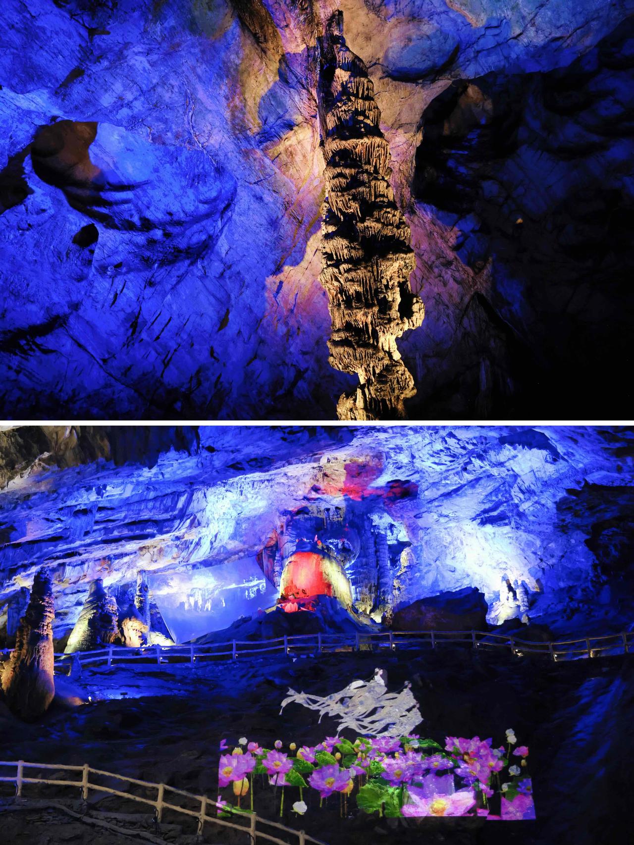 走进洞内,瞬间被巨大的地下宫殿震撼。灯光打在那些形态各异的钟乳石上,有的像瀑布倾泻,有的像仙女下凡,真正是“万象森列”。洞内空间极大,开阔处能容下几百人,狭窄处仅容一人侧身而过。目前开放的日宫、月宫和天宫,足够你逛上2-3个小时。