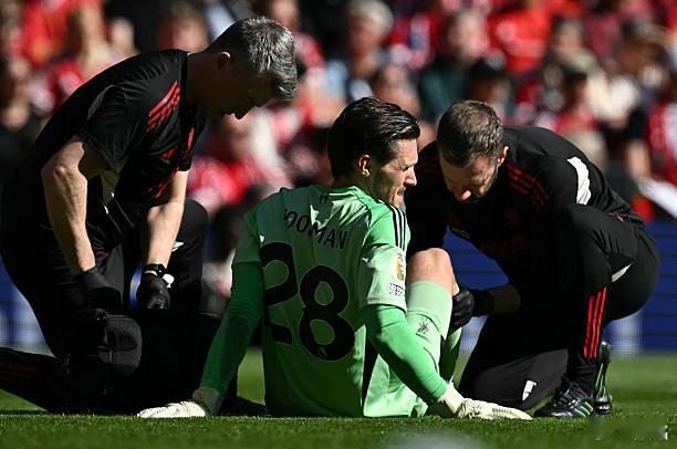 利物浦vs水晶宫 门将伍德曼被对手给闷了,倒地不起,水晶宫的右边翼卫穆尼奥兹吊射