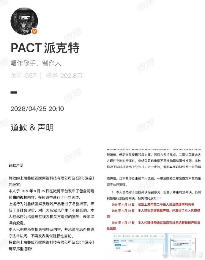 派克特道歉声明连句对不起都没有 道歉的诚意在哪儿?