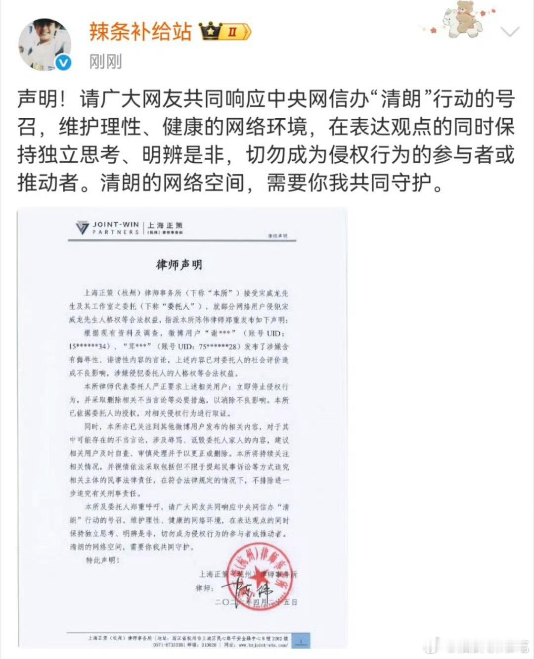 宋威龙告张凌赫粉丝既然能被律师取证肯定是侵权了或者说了非常难听的话,一定要文明上